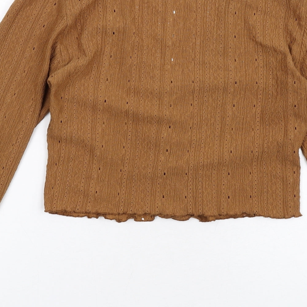 Womens Brown Geometric Polyester Cropped Button-Up Size M V-Neck