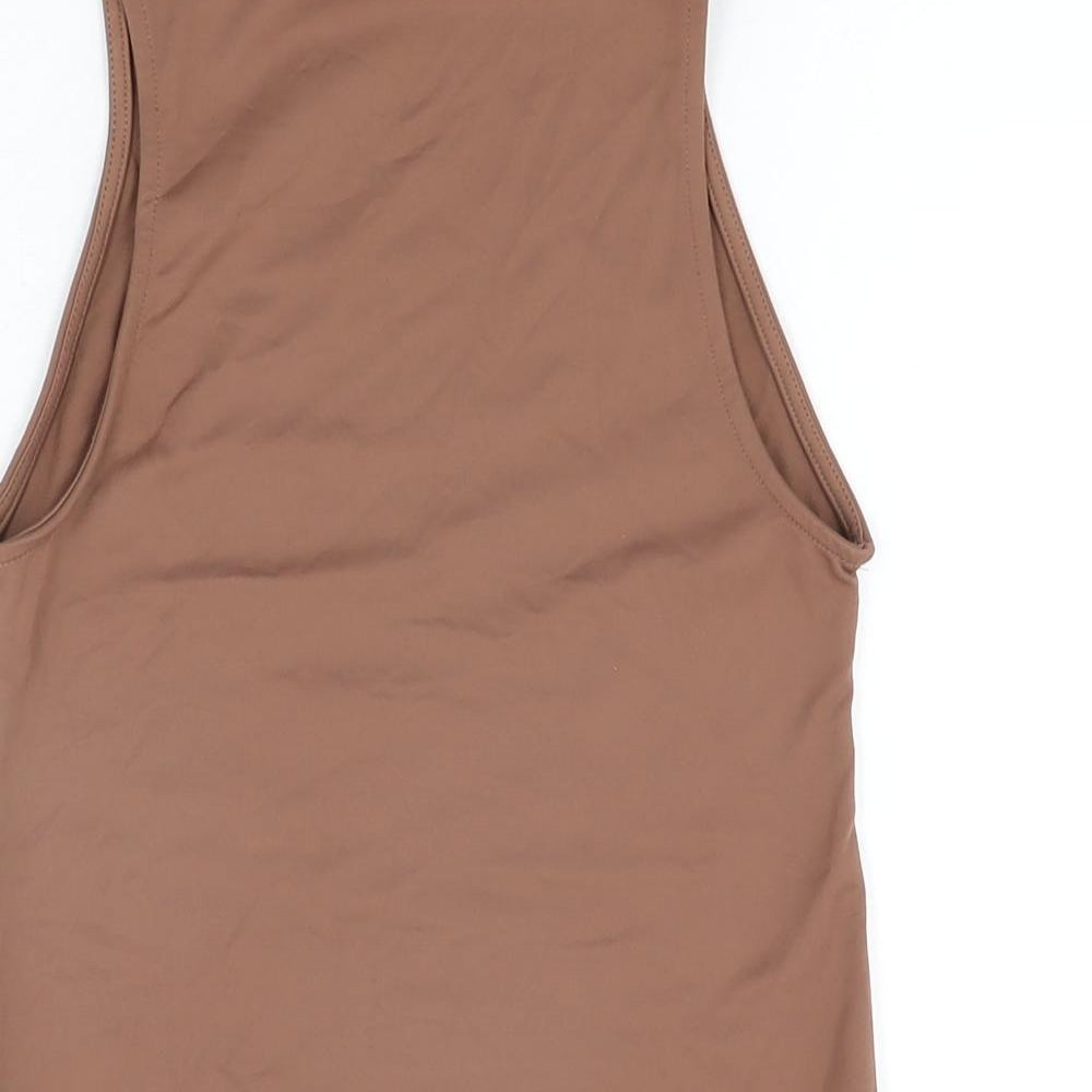 Womens Brown Polyester Bodysuit One-Piece Size M Snap