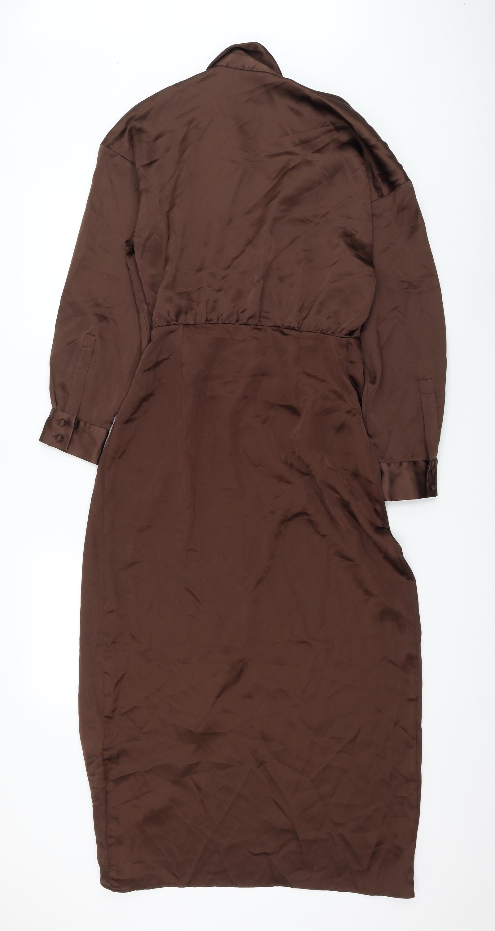 Womens Brown Polyester Shirt Dress Size S Collared Button