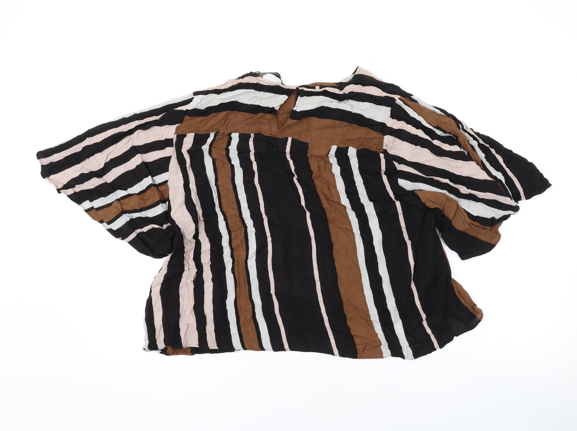 Womens Brown Striped Viscose Basic Blouse Size L Round Neck