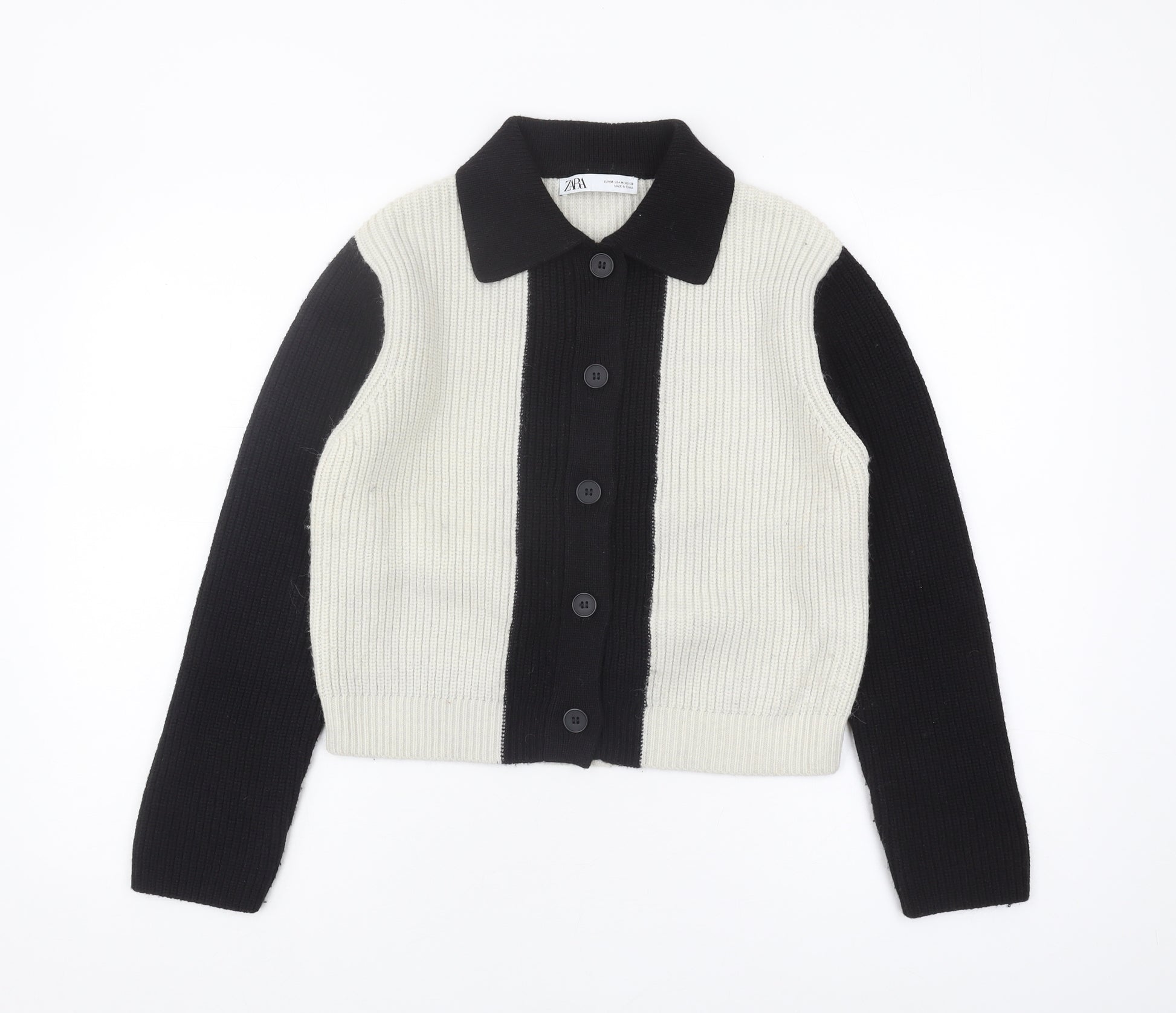 Zara Womens Black Collared Sleeveless Knit Cardigan M