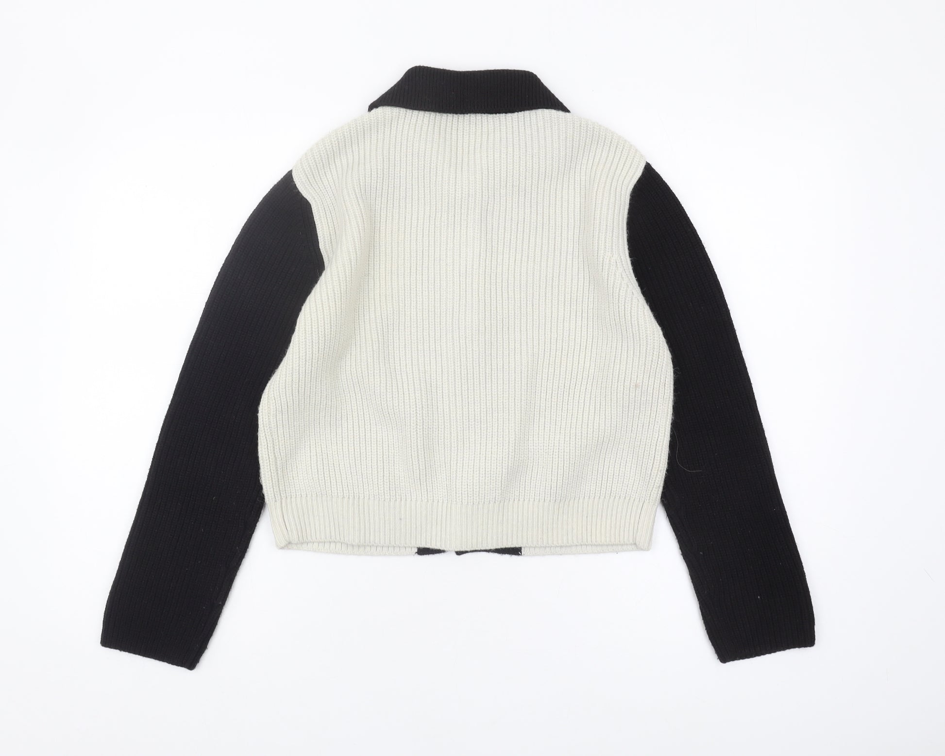 Women's Cardigan, Black/Ivory, M, Collared Style