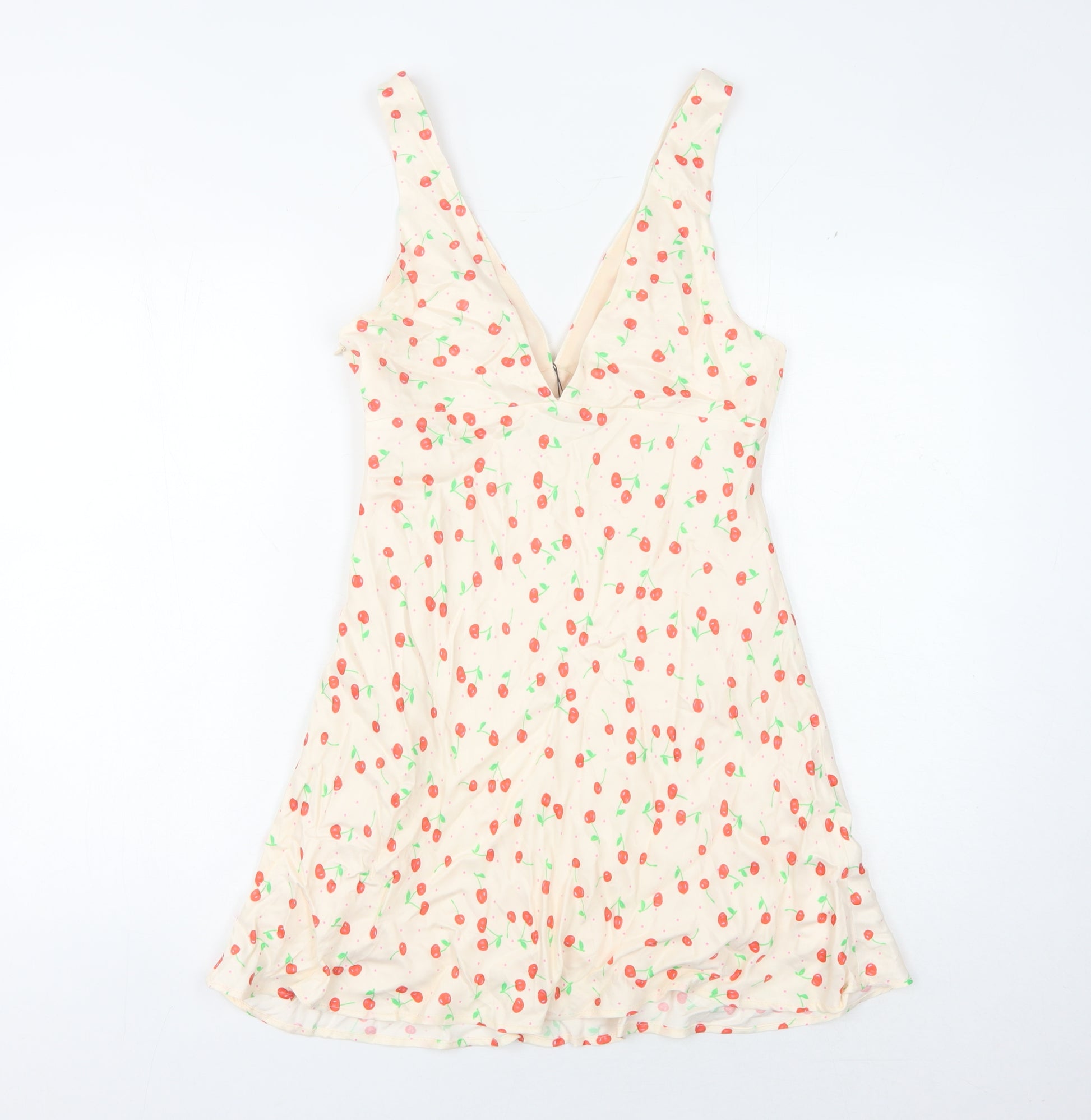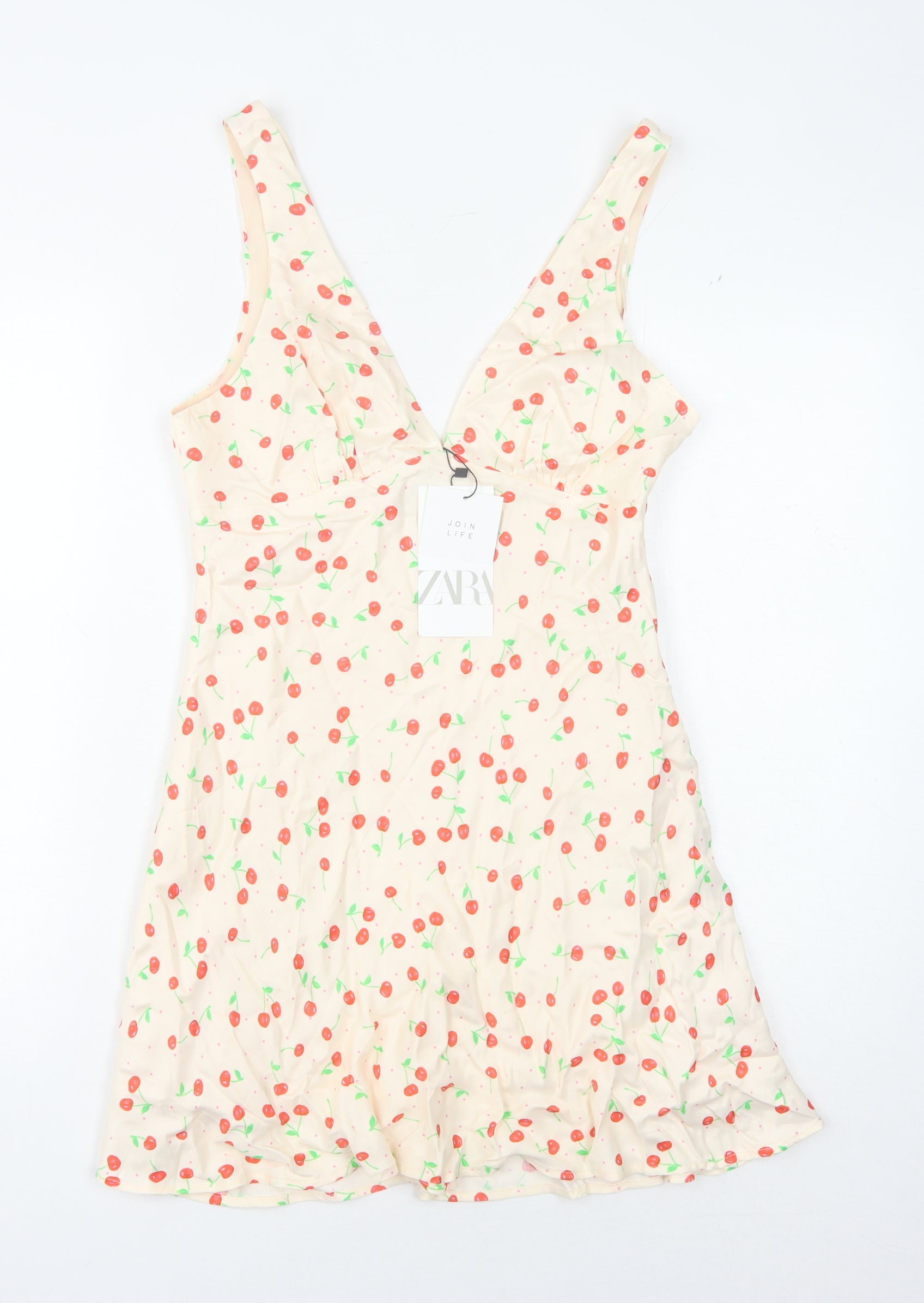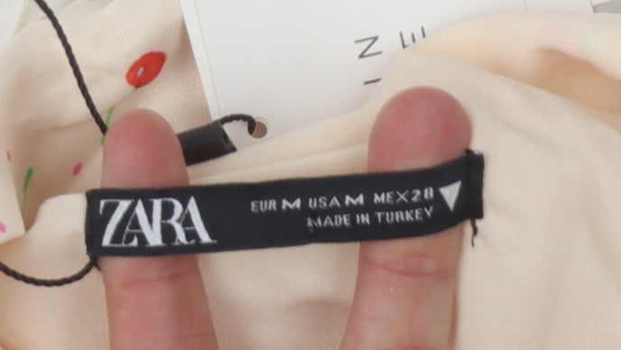 Add a burst of freshness to your wardrobe with this charming floral V-neck dress from Zara. Crafted for women who love mixing style with comfort, this medium-sized dress is an ideal choice for various occasions. The playful multicoloured floral pattern sets a delightful tone, making it a fabulous pick for casual outings or leisurely weekends. Made from 100% viscose, the dress is lightweight and perfect for warmer climates, ensuring you stay comfortable while looking chic. Its sleeveless design and V-neckline add a contemporary touch that flatters any figure, providing a modern appeal. The dress sports an easy pullover design, letting you slip it on with minimal effort. With its woven fabric type, it gives a hint of structured elegance, making it a versatile piece that can transition from daytime errands to evening gatherings with ease. Whether you’re heading to a garden party or a casual brunch, this dress will have you stepping out in style. Finished with a neat hem and a lovely flowy silhouette, it promises to flatter your form gracefully. Embrace the spirit of the season and showcase your unique fashion sense with this Zara floral dress. Don't miss out; make it a staple in your closet today.