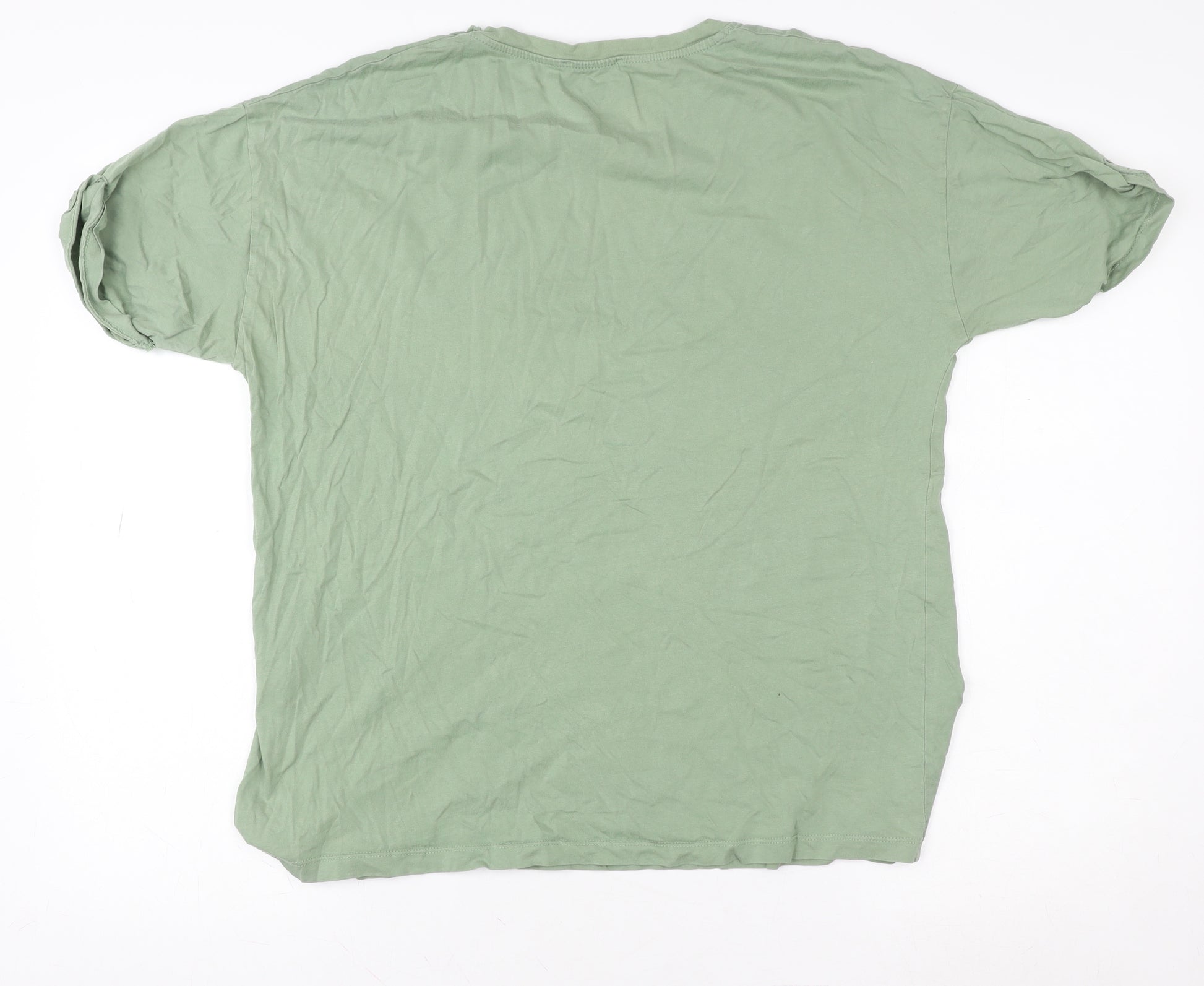 Refresh your casual wardrobe with this effortlessly stylish Zara Women’s Basic T-Shirt in a soft sage green colour. Crafted from 100% cotton, this top offers a breathable and lightweight feel, ideal for everyday wear throughout spring and summer. The design features a classic crew neckline, short sleeves, and a relaxed regular fit that ensures all-day comfort while maintaining a clean, flattering silhouette. Perfect for layering or wearing on its own, the T-shirt carries a minimalist aesthetic with a discreet city-themed slogan print, giving it a modern, urban edge. The durable jersey fabric enhances its versatility, making it suitable for pairing with jeans, skirts, or shorts for an easy, laid-back look. The simple pullover style allows for convenience and ease of wear, while the cotton construction provides softness against the skin. Its solid green tone complements a wide range of outfits and accessories, ensuring it becomes a wardrobe staple for years to come. Designed for the modern woman who values practicality and timeless style, this Zara T-shirt transitions seamlessly from weekend outings to relaxed evenings. It remains in very good pre-owned condition, showing minor signs of wear and light natural creasing consistent with gentle use, retaining its shape and quality. Machine washable for easy care, this piece exemplifies the effortless blend of comfort and minimalist design that Zara is renowned for. Whether styled casually or paired with tailored separates for a high-low ensemble, this cotton tee embodies versatility and understated charm. Add this essential piece to your wardrobe and enjoy the perfect balance of comfort, simplicity, and style.