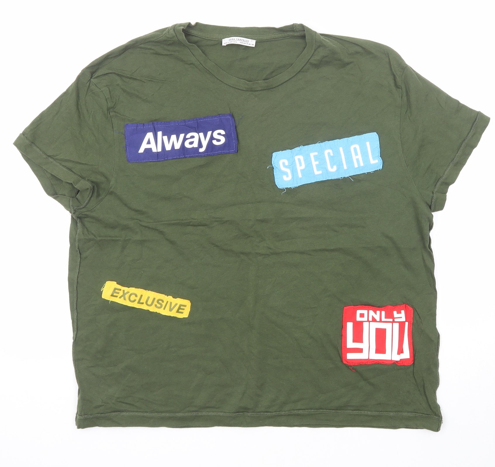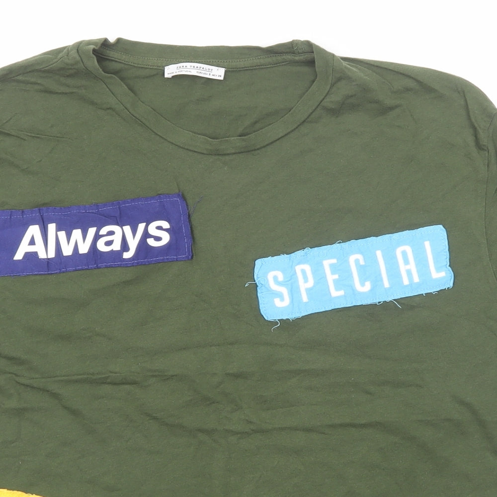 Zara Women's Green Basic Cotton T-Shirt Size S Crew Neck Short Sleeve