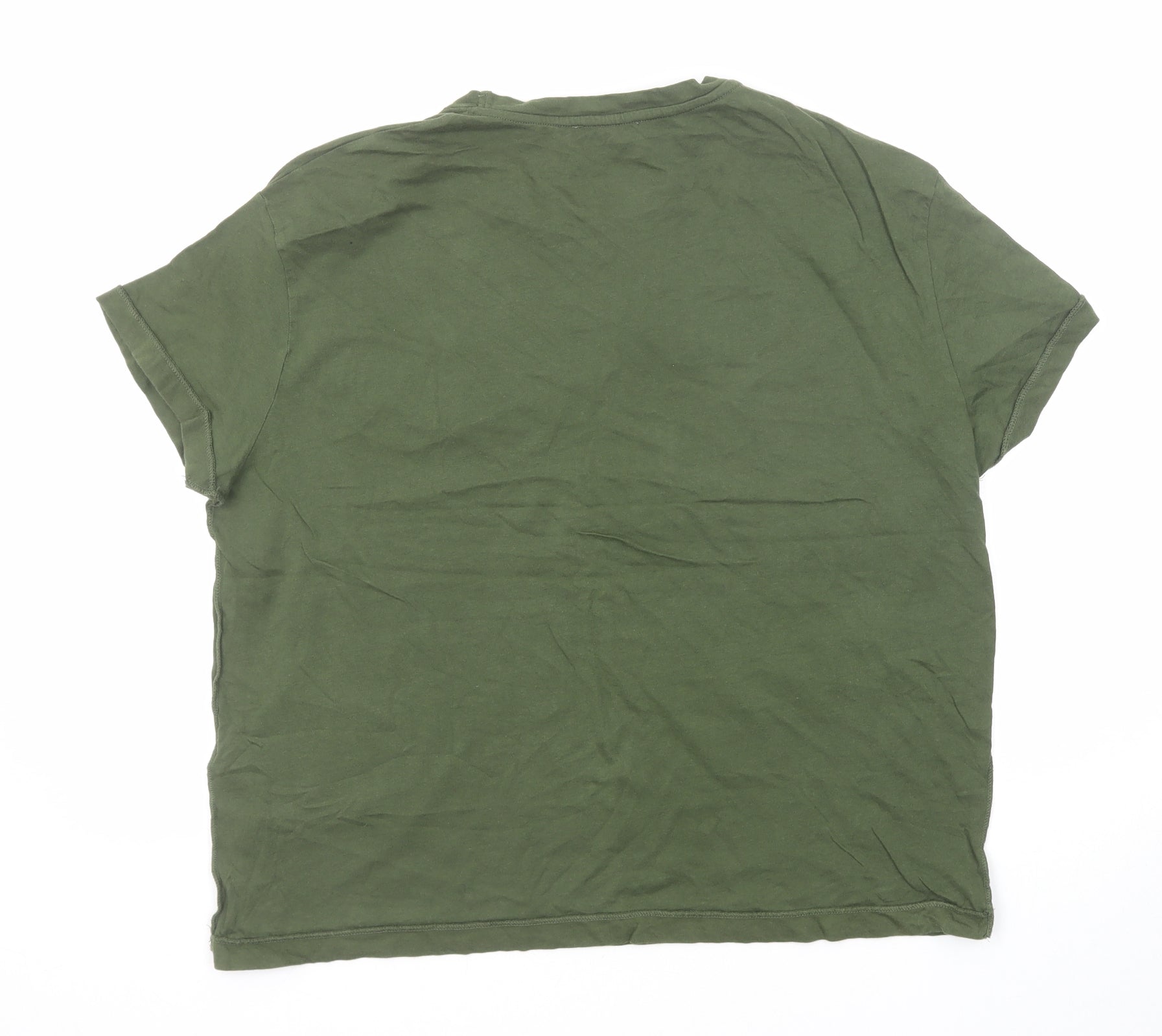 Womens Green Cotton Basic T-Shirt Size S Crew Neck