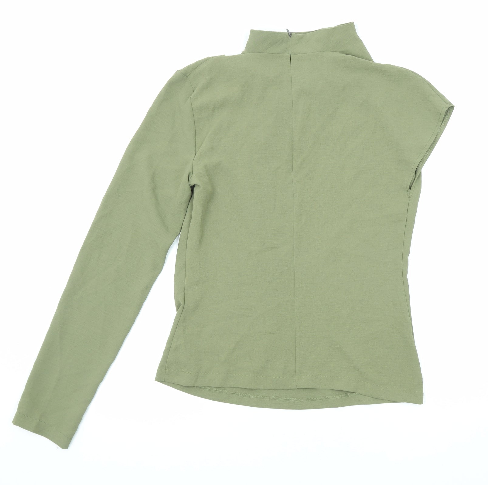 Womens Green Polyester Basic Blouse Size S Mock Neck - Asymmetric