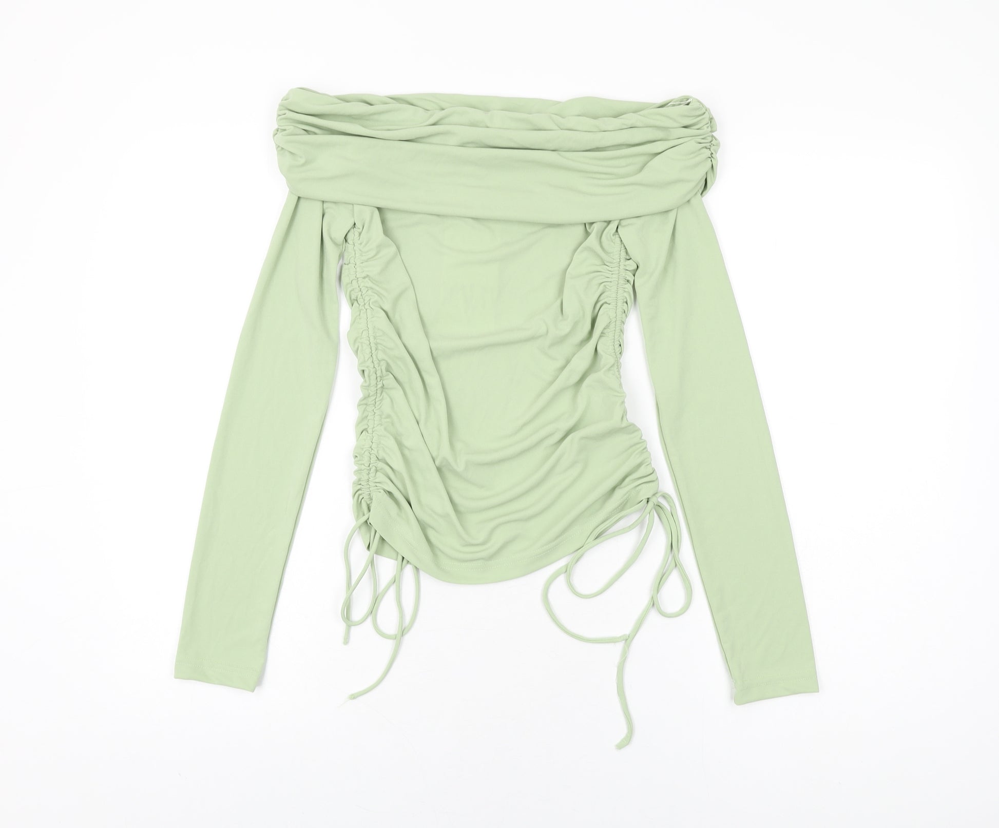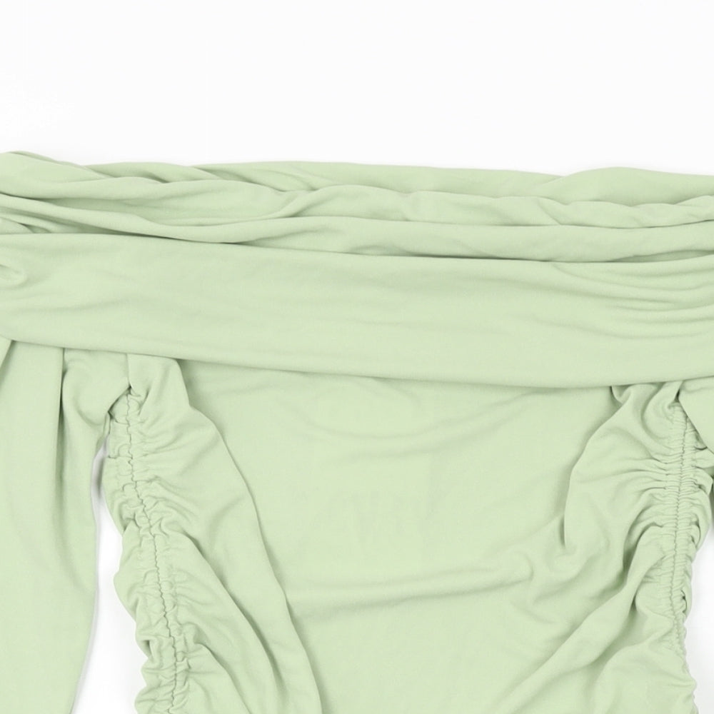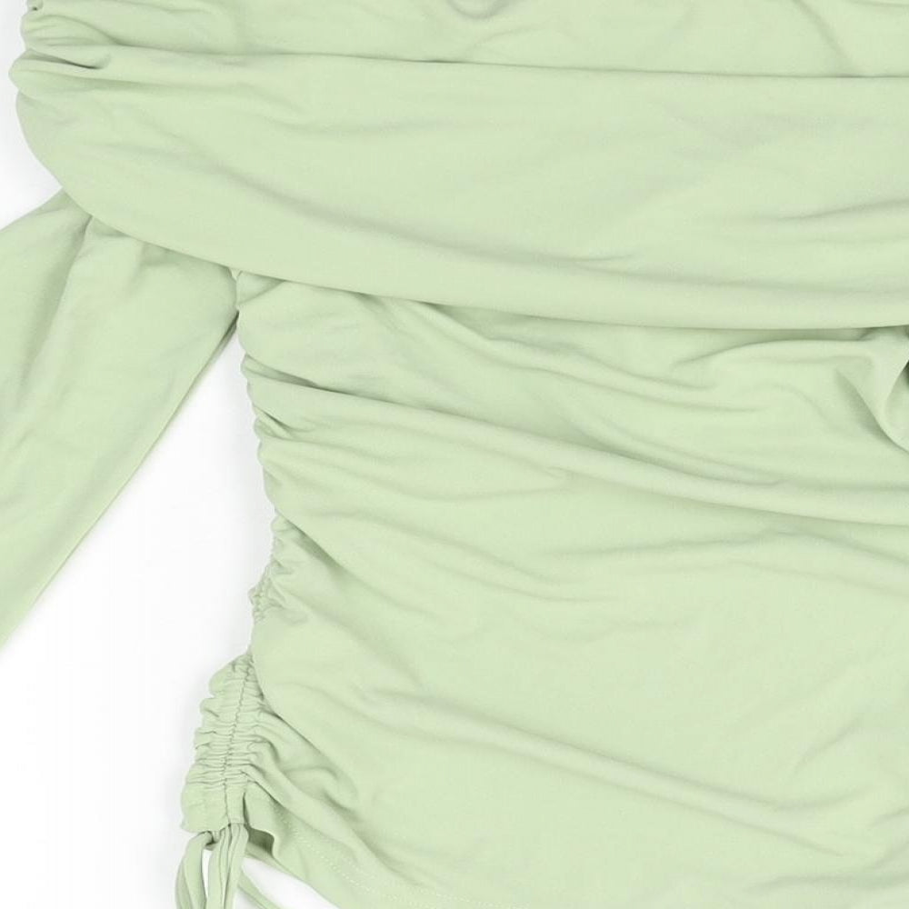 Womens Green Polyester Basic T-Shirt Size XS Off the Shoulder