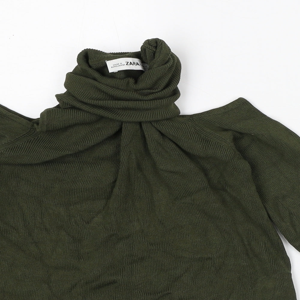 Uniqlo Women's Green Mock Neck Wool Blend Jumper Size M
