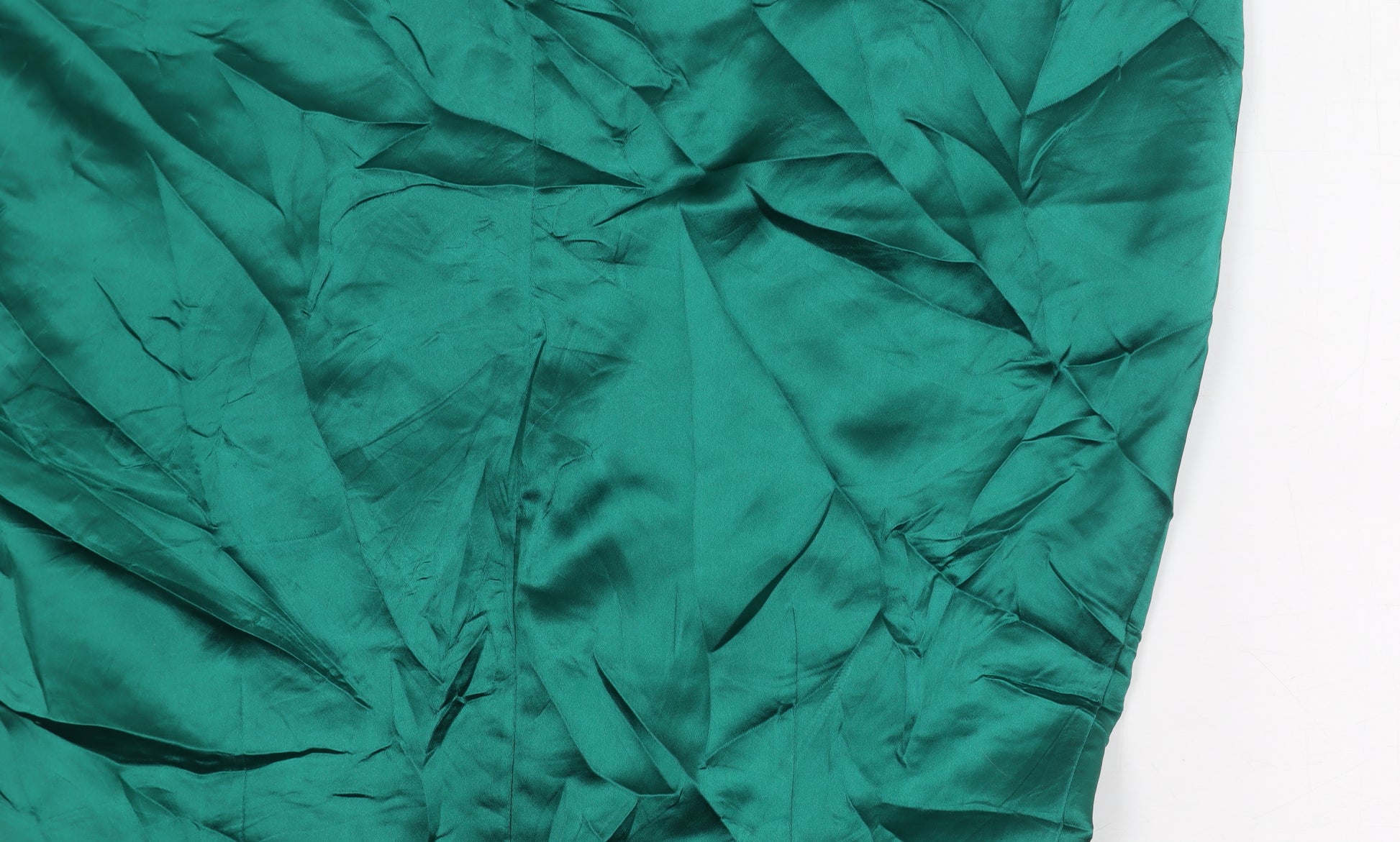 Introducing the elegant Zara Women's Slip Dress, a chic addition for your wardrobe. Crafted in a vibrant green hue, this dress exudes sophistication and modern style. With its sleek design, it features strappy sleeves and a zip closure for ease of wear. The slip dress style is ideal for various occasions, whether you're dressing up for an evening event or styling it for a casual day out. Made from a comfortable woven fabric combining polyester and elastane, this dress ensures a flattering fit and fluid movement. The dress is in excellent condition with slight wrinkling visible, adding a touch of character to its look. Perfect for those who love minimalism with a pop of colour, this Zara dress will be your go-to for elevating your fashion game.