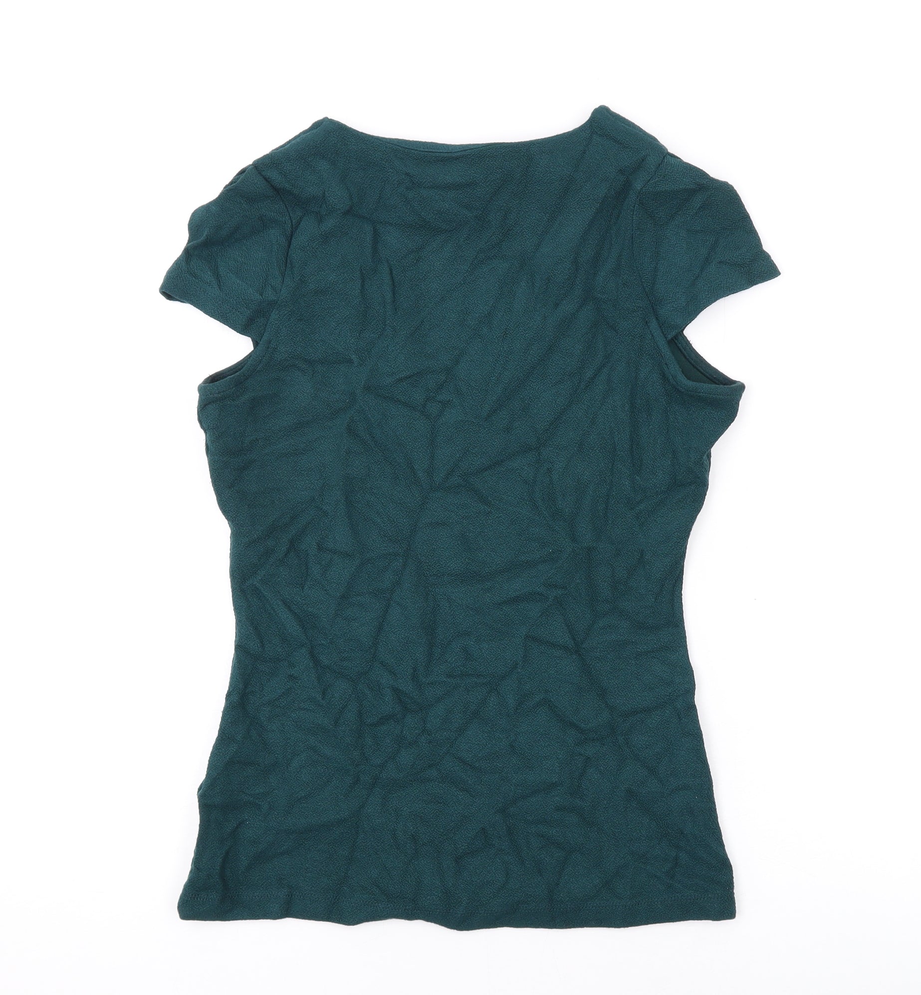 Womens Green Viscose Basic T-Shirt Size M V-Neck