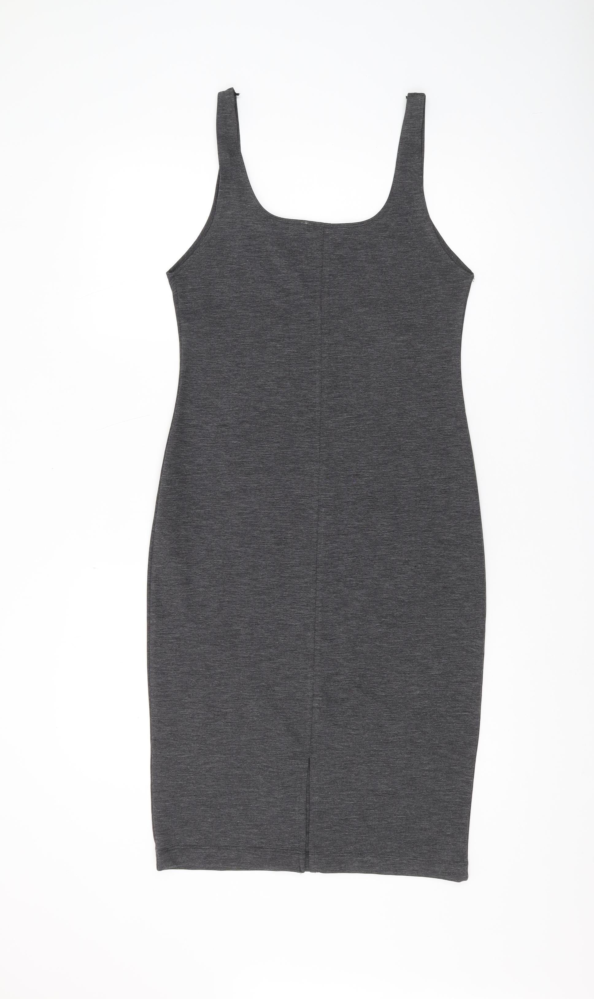 Elevate your casual wardrobe with this stunning grey bodycon dress from Zara. Designed for a sleek and modern look, this knee-length dress is perfect for any casual outing or summer event. The sleeveless design and scoop neckline enhance its chic appeal, while the strappy sleeves add a touch of elegance. Crafted from quality jersey fabric composed of 96% polyester and 4% elastane, it offers a comfortable and stretchy fit that flatters your silhouette. Ideal for spring and summer, the neutral grey tone ensures it pairs well with any accessories. Whether you're going for a laid-back coffee date or a night out with friends, this dress will ensure you look effortlessly stylish. In excellent condition with no visible signs of wear, it promises to be a versatile addition to your collection. Grab this piece of fashion-forward attire today and make a statement wherever you go!