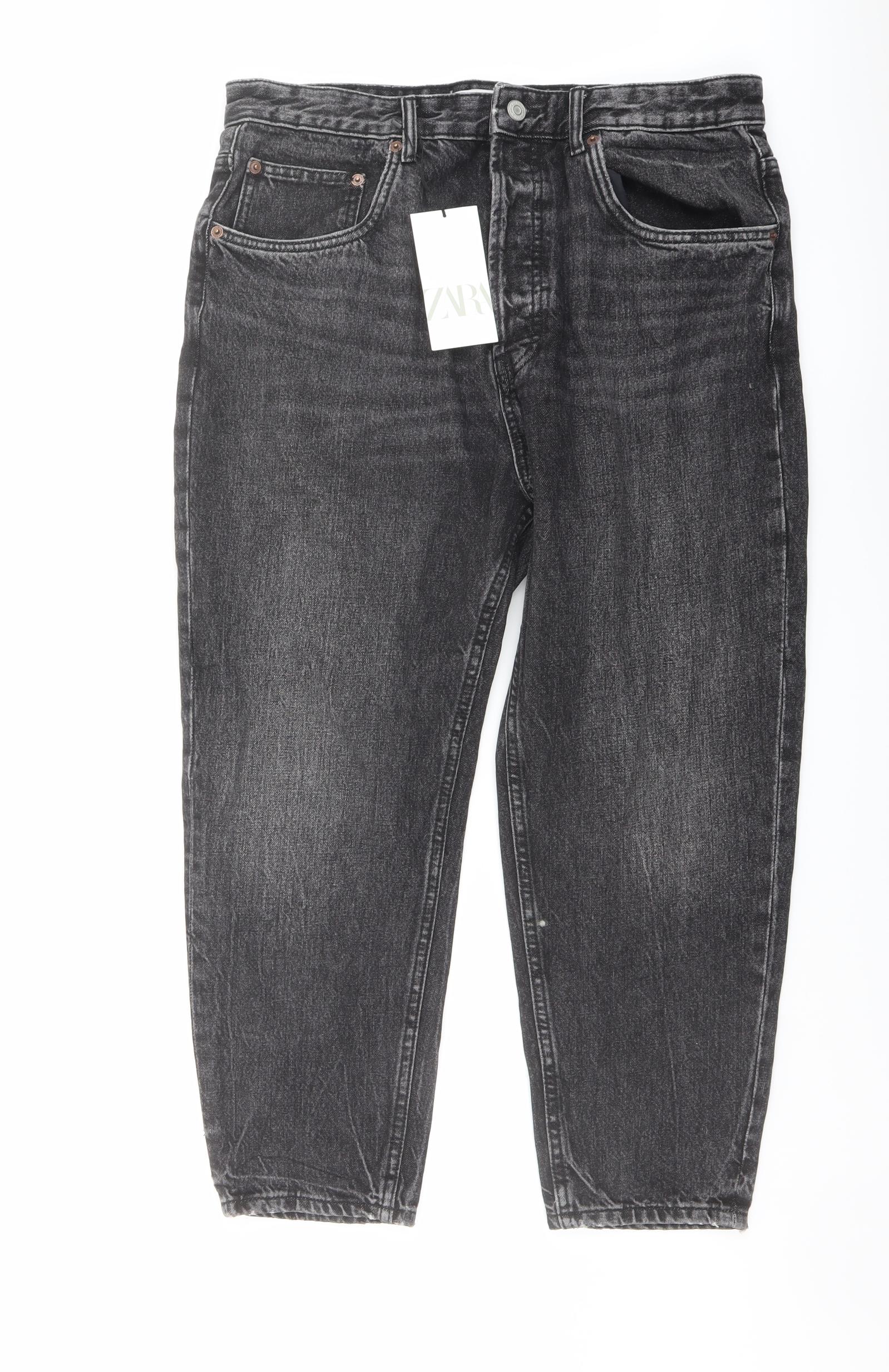 Womens Grey Cotton Cropped Jeans Size 16 L24 in Regular Button