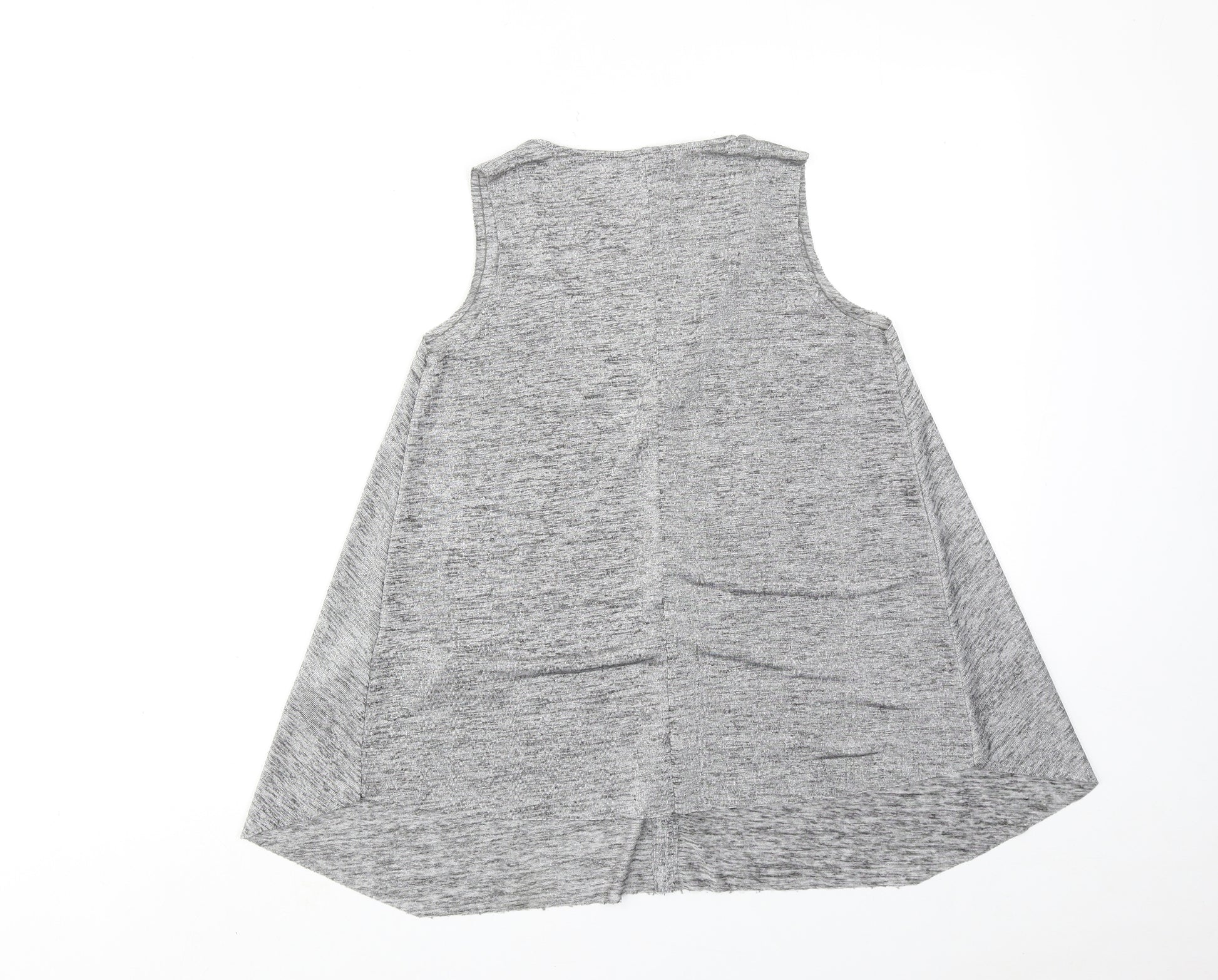 Womens Grey Geometric Polyester Basic Tank Size S V-Neck