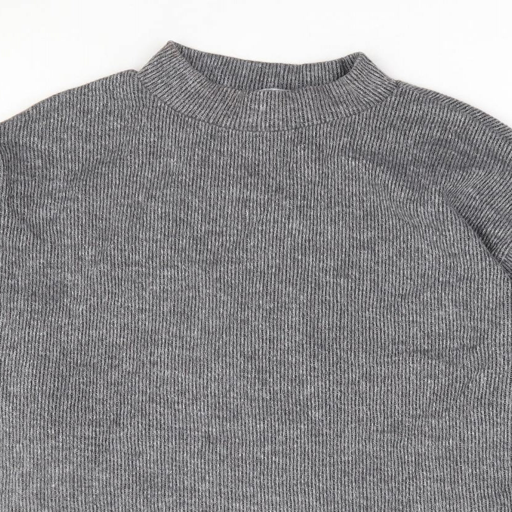 Womens Grey High Neck Cotton Pullover Jumper Size L