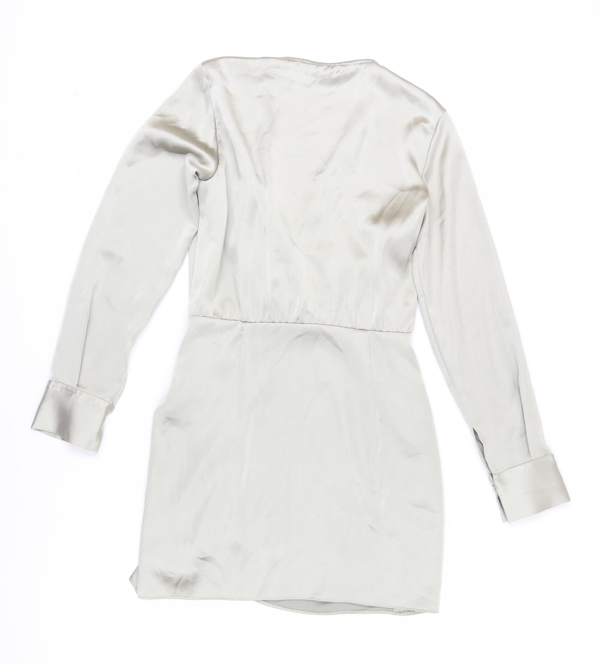 Women's Grey Satin Wrap Dress, Size S, Elegant Style