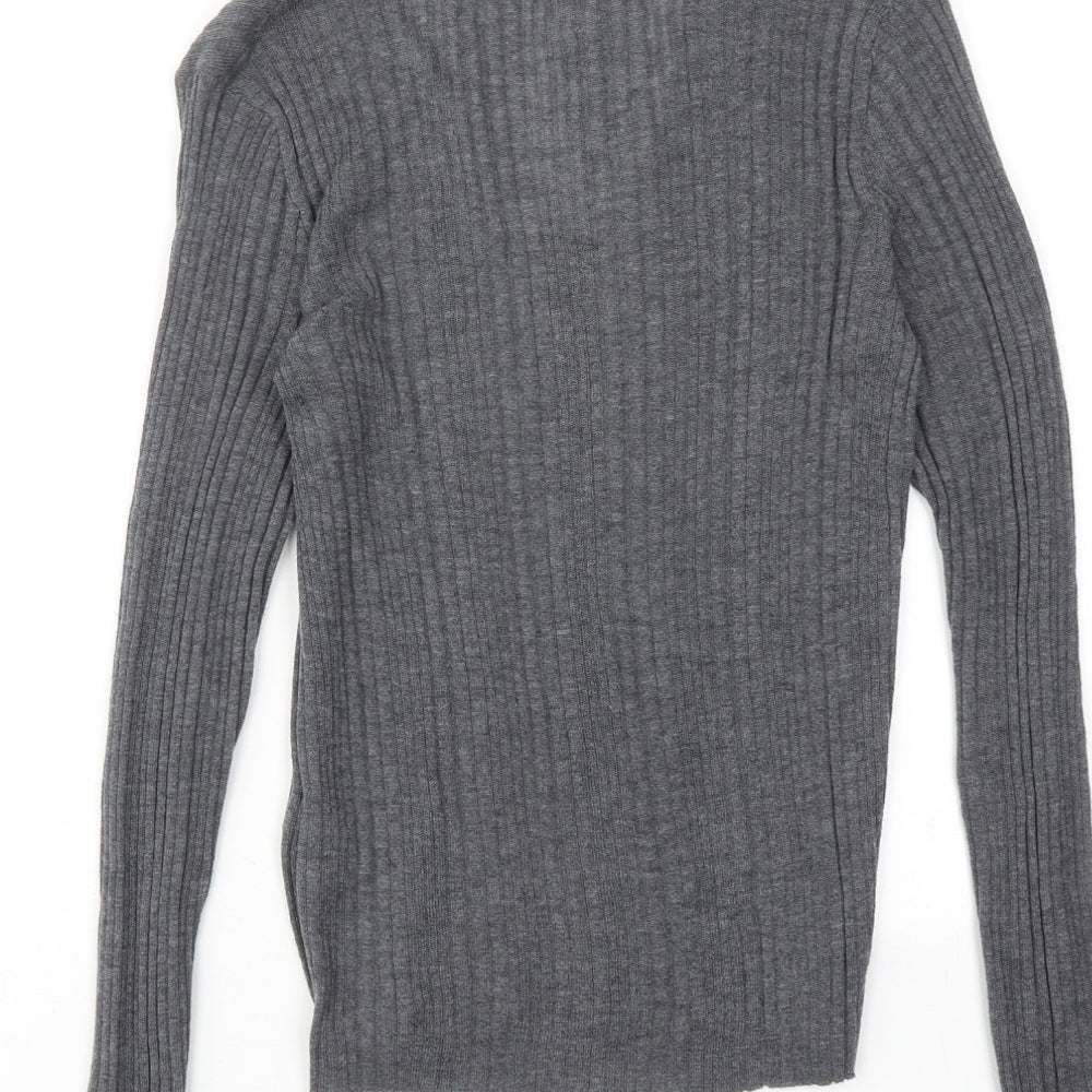 Womens Grey V-Neck Nylon Pullover Jumper Size S