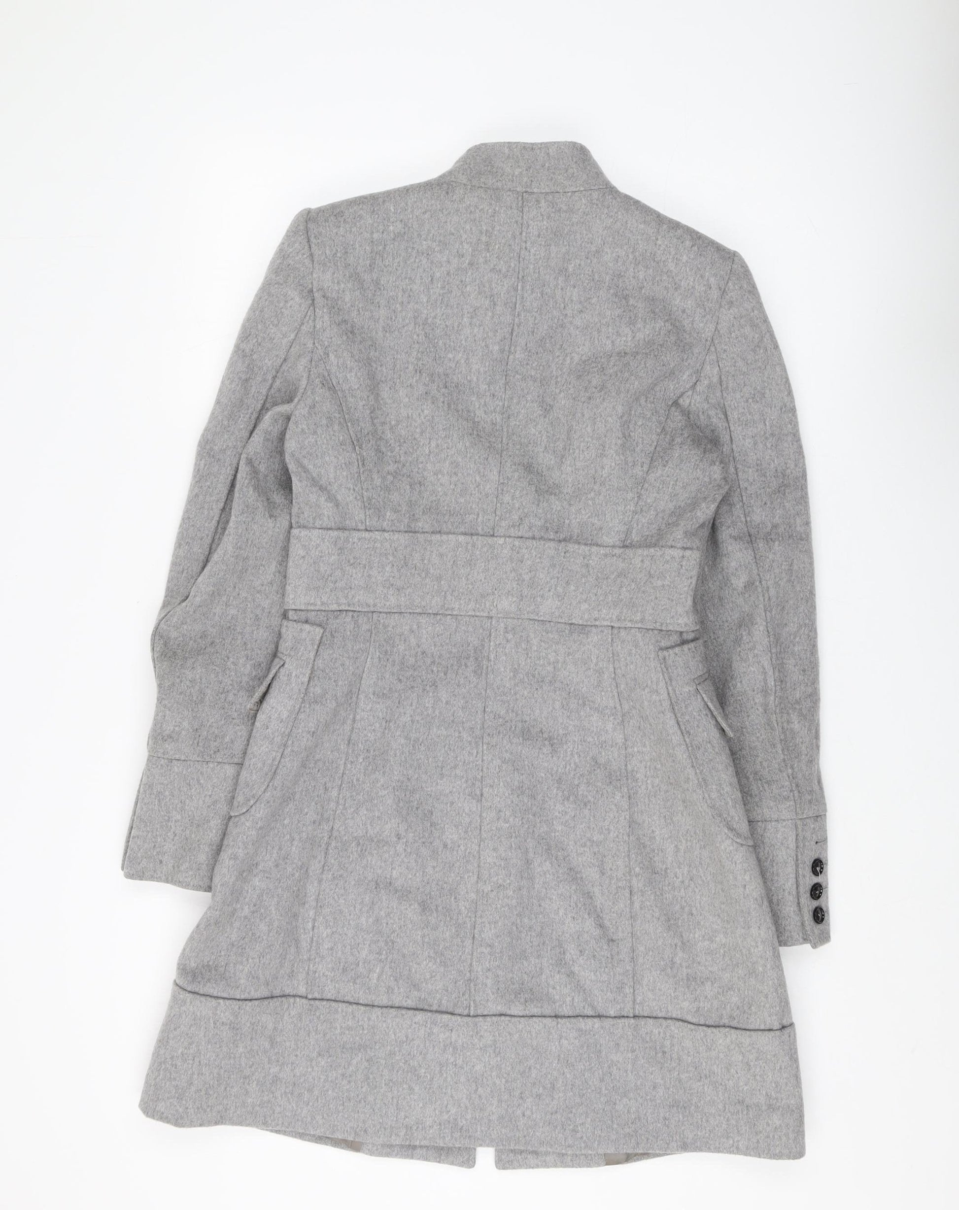 Introducing a sleek and stylish grey overcoat by Zara, designed to elevate your wardrobe with a touch of elegance. Perfect for the modern woman, this slim fit coat is crafted from premium quality wool, ensuring warmth and comfort during the colder months of autumn and winter. Its mid-length design adds sophistication, making it a versatile piece for both formal and casual occasions.The coat features a classic button closure, providing a timeless appeal that is perfect for any wardrobe. The grey hue offers a neutral palette, easily complementing any outfit or accessory. Designed for women, this overcoat is lined with soft viscose material, making it comfortable for all-day wear.This Zara overcoat is an excellent addition to any collection, marrying style with practicality. Whether you're heading to the office or out for a weekend brunch, it ensures you look polished and poised. Its slim silhouette flatters the figure, while its classic theme and accents such as buttons keep it effortlessly chic.Machine washable conditions recommend dry cleaning only to maintain the integrity of the wool fabric. With no visible signs of wear, this coat is priced at £49.75, reflecting its excellent condition. Invest in this timeless piece to enhance your outerwear collection, and enjoy the blend of Zara's contemporary design with traditional tailoring.