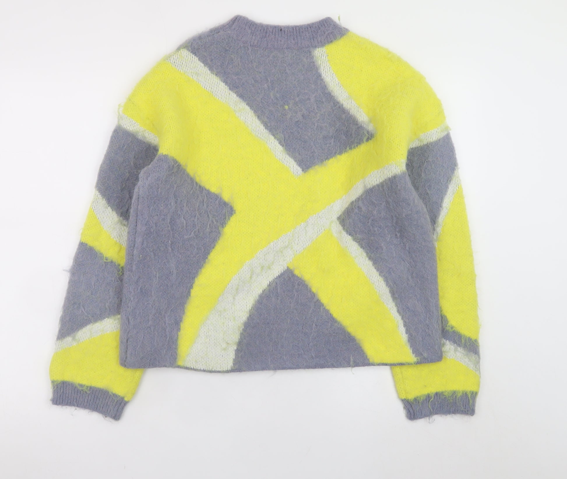 ZARA Womens Grey Yellow Pullover Jumper Size S Soft Knit Geometric Pattern