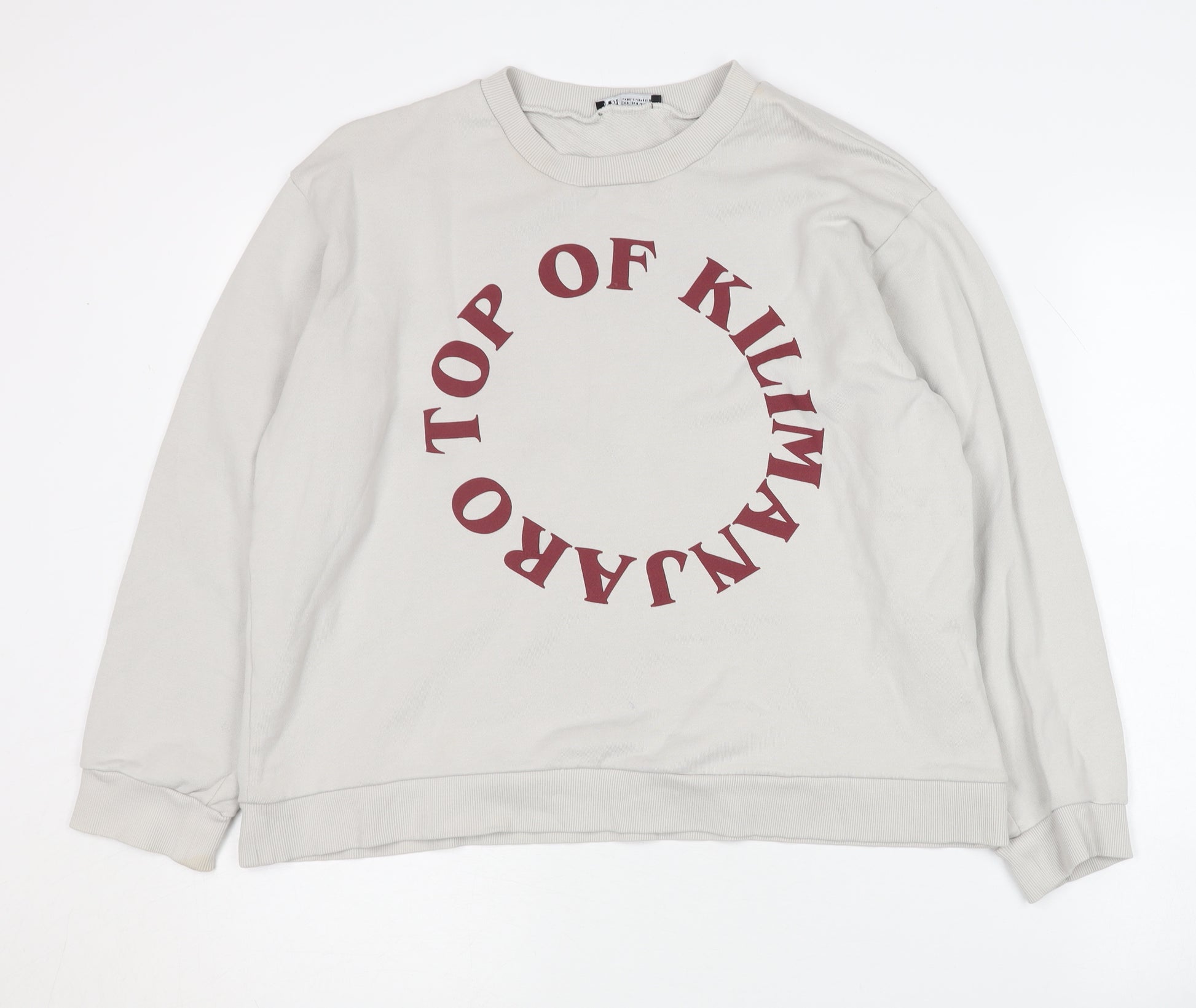 Elevate your casual wardrobe with this stylish and comfortable Zara sweatshirt. Its ivory colour and bold 'Top of Kilimanjaro' logo graphic make it a chic addition to any outfit. Crafted from 100% cotton jersey fabric, it promises softness and breathability, ideal for all seasons. The regular fit and crew neck design offer timeless appeal, while long sleeves provide extra warmth. Perfect for casual occasions, this pullover sweatshirt combines fashion and comfort effortlessly. Machine washable for easy care, this piece will quickly become a staple in your collection. Ideal for layering or wearing on its own, it's a versatile and trendy choice for any fashion-forward woman.