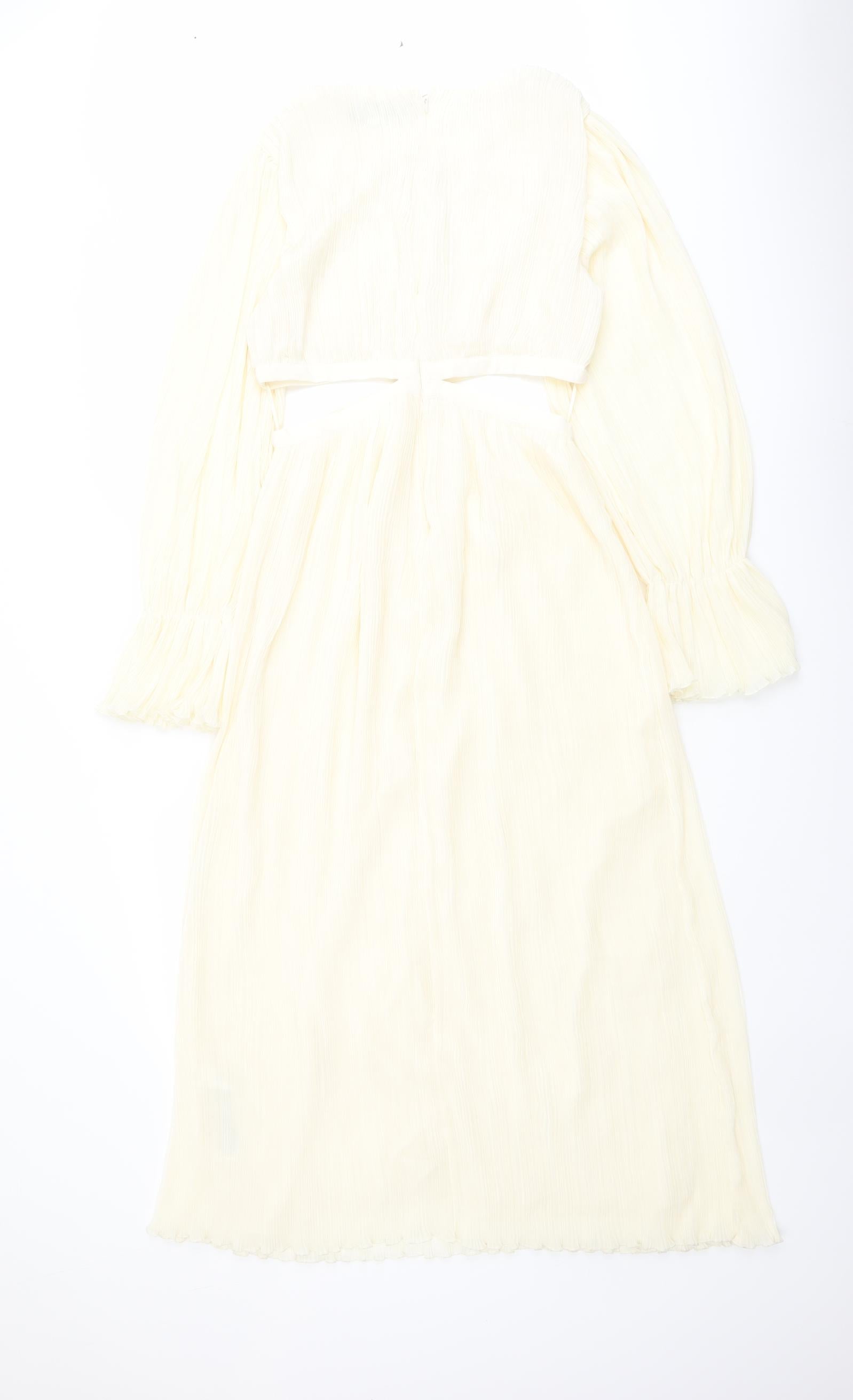 Womens Ivory Polyester A-Line Size S Round Neck Zip