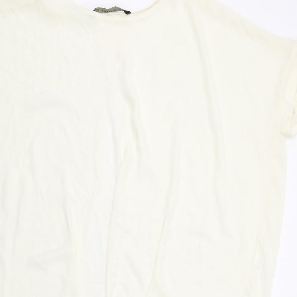Womens Ivory Polyester Basic Blouse Size M Round Neck - Dipped Hem