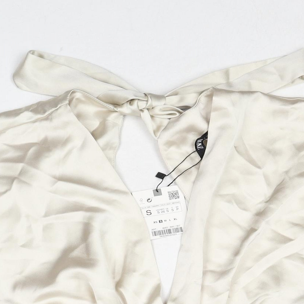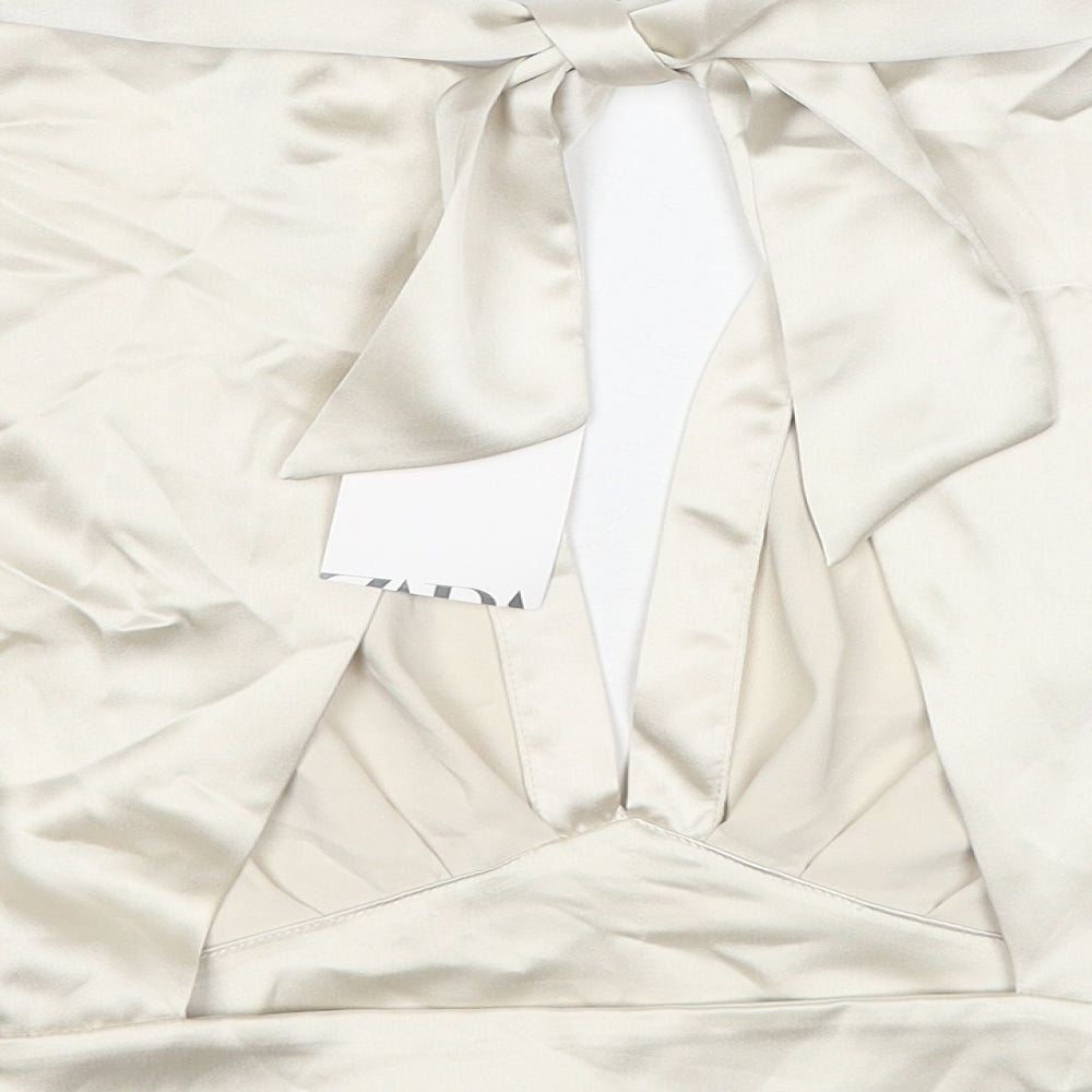 Womens Ivory Polyester Cropped Tank Size S V-Neck - Open Back