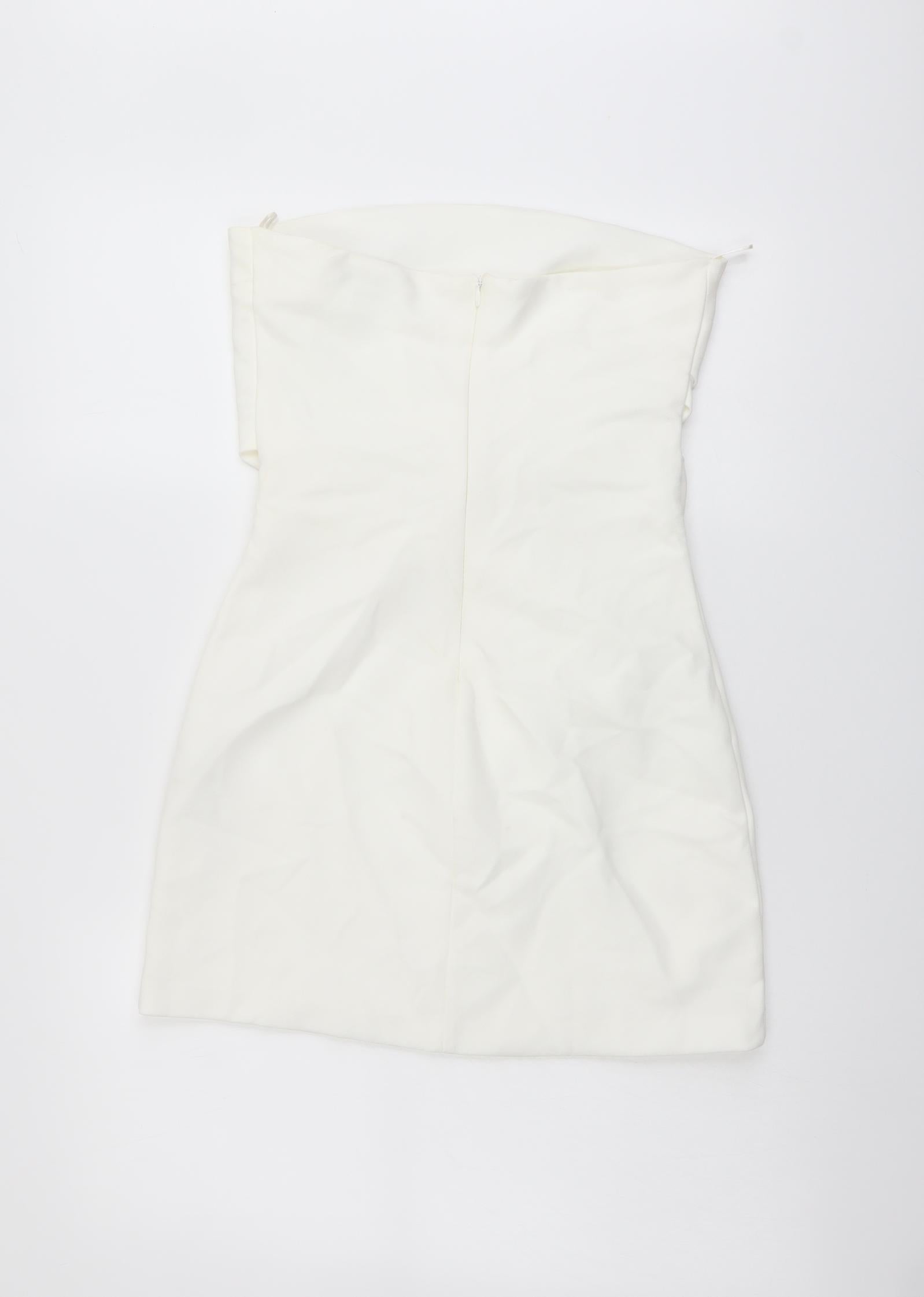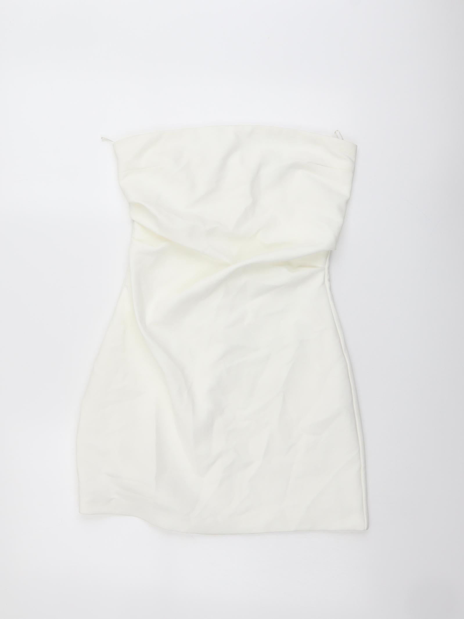 Womens Ivory Polyester Mini Size S Off the Shoulder Zip