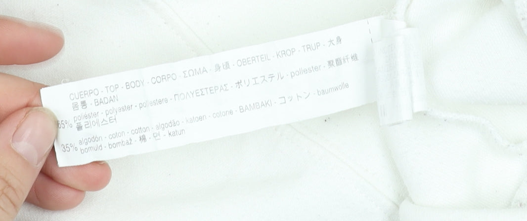 Elevate your casual wardrobe with this elegant Zara Women's Pullover Jumper, crafted to add a touch of sophistication to your everyday look. Designed in a refreshing ivory hue, this jumper is perfect for a versatile yet stylish addition to your closet. Ideal for women who appreciate a blend of comfort and style, this jumper offers a regular fit that is both flattering and comfortable. Made from a combination of polyester and cotton, the fabric ensures a soft feel against the skin and durability that withstands regular wear. The long sleeves add a touch of elegance, making it suitable for layering or as a standalone piece. With its simple yet chic aesthetic, this pullover boasts a no-pattern design, perfect for pairing with a variety of outfits. Whether you’re heading out for a casual day, a cozy night in, or a brunch date with friends, this Zara pullover jumper is a great choice. Its classic silhouette is complemented with stylish flair making it a must-have for those who value timeless fashion. Despite being in excellent pre-owned condition, this jumper looks brand new and flawless, making it a smart buy for the conscious fashionista. Dive into the world of comfort and style with this Zara Women's Ivory Pullover Jumper and redefine your everyday wear with effortless elegance. Don't miss out - grab this stylish staple today!