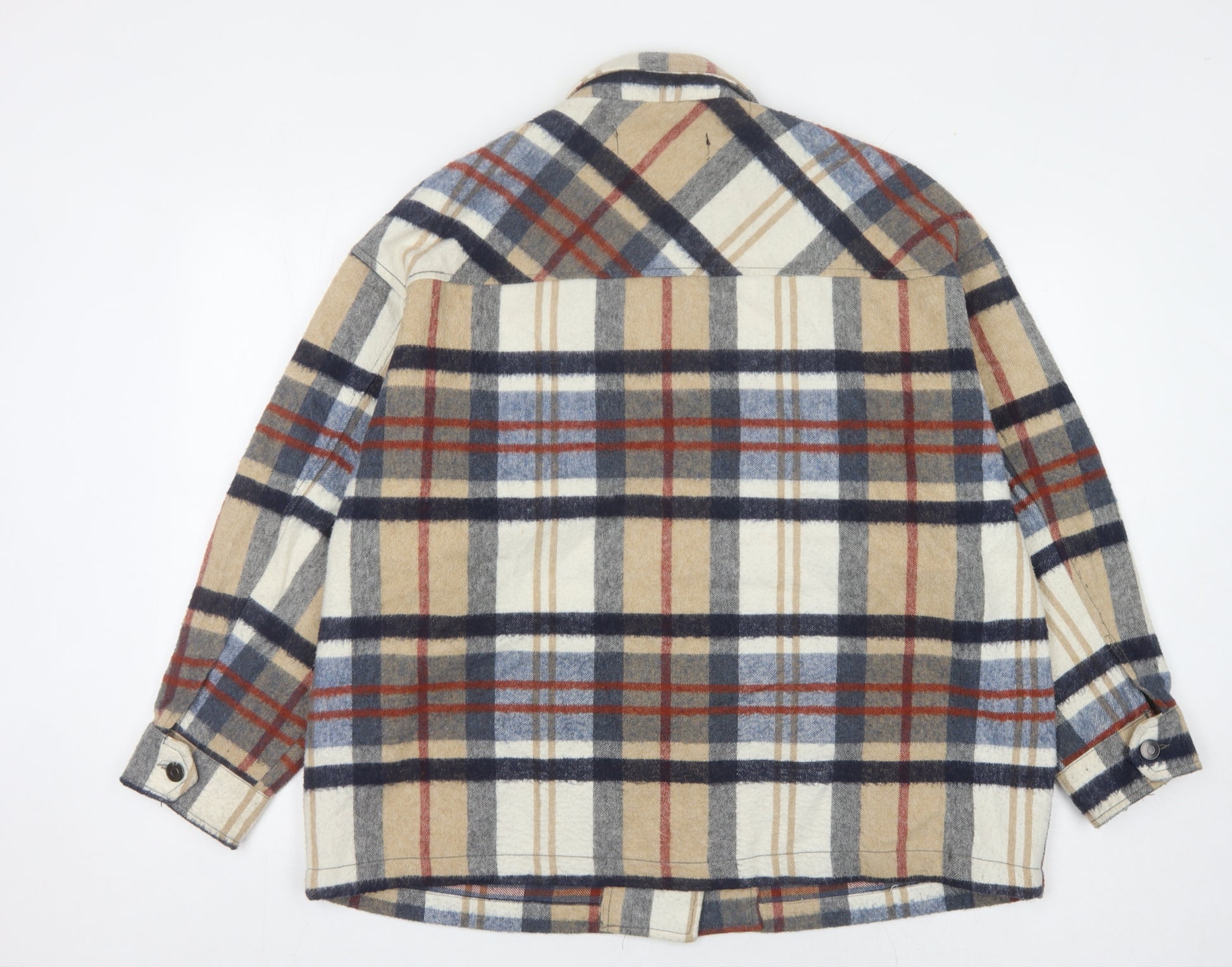 Explore timeless style with this Zara Women's Multicoloured Check Jacket in size XL. Crafted for those who appreciate classic aesthetics, this mid-length jacket boasts a luxurious blend of acrylic, polyester, and wool, ensuring both comfort and durability. The multicoloured check pattern offers a chic and versatile addition to your wardrobe, perfect for casual outings in the autumn and winter seasons. Features include a collared neck and secured with stylish buttons, adding to its classic appeal. This women's regular-fit jacket is designed for a relaxed look, ensuring comfort throughout your day. Ideal for casual gatherings or everyday wear, you'll stay chic while enjoying effortless style. The excellent condition reflects its superior quality with no visible signs of wear or damage. Delight in the fusion of style and practicality and make your statement this season with Zara.