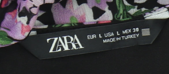 Embrace elegance and charm with this exquisite Zara women's dress. Featuring a vibrant multicoloured floral pattern set against a black background, this dress is sure to make a statement. Designed in a comfortable size 12, it perfectly complements the regular fit style, offering both comfort and grace. The dress features a flattering round neckline and long sleeves, providing a touch of sophistication. The convenient zip closure ensures ease of wear. Made primarily from a cotton blend, it offers a soft and breathable feeling, ideal for any occasion. The dress is fully lined, ensuring a smooth silhouette while adding an extra layer of comfort. Despite being pre-owned, it remains in excellent condition with no visible defects. Whether you're attending a casual gathering or a semi-formal event, this Zara dress is a perfect choice. Pair it with your favourite heels and accessories for a polished look that exudes confidence. Don't miss the opportunity to add this versatile and stylish piece to your wardrobe today!