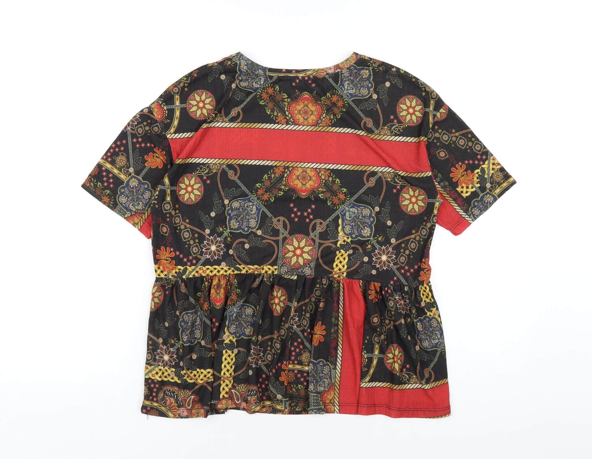 Womens Multicoloured Geometric Polyester Basic T-Shirt Size S Round Neck