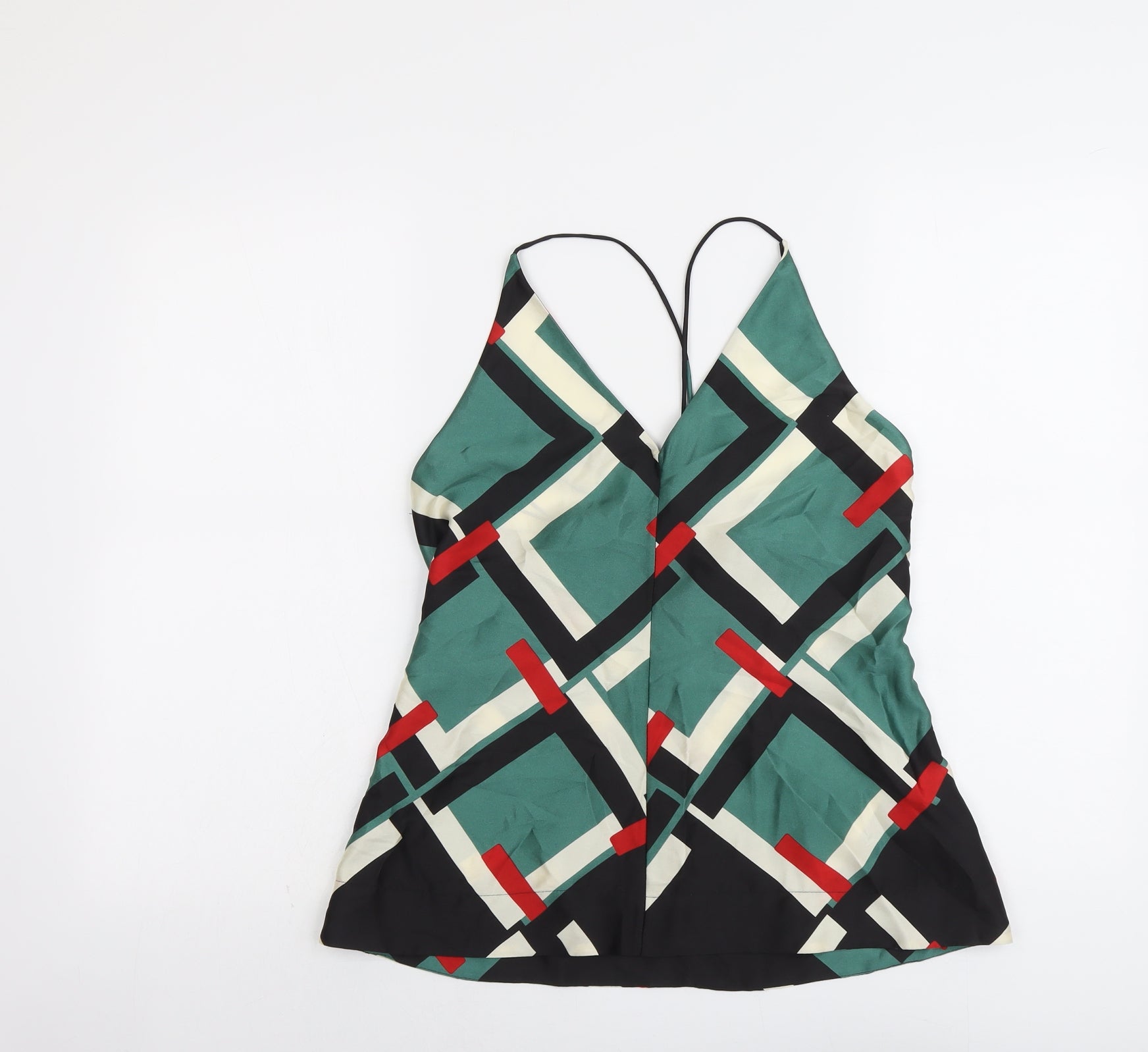 Womens Multicoloured Geometric Polyester Basic Tank Size M V-Neck