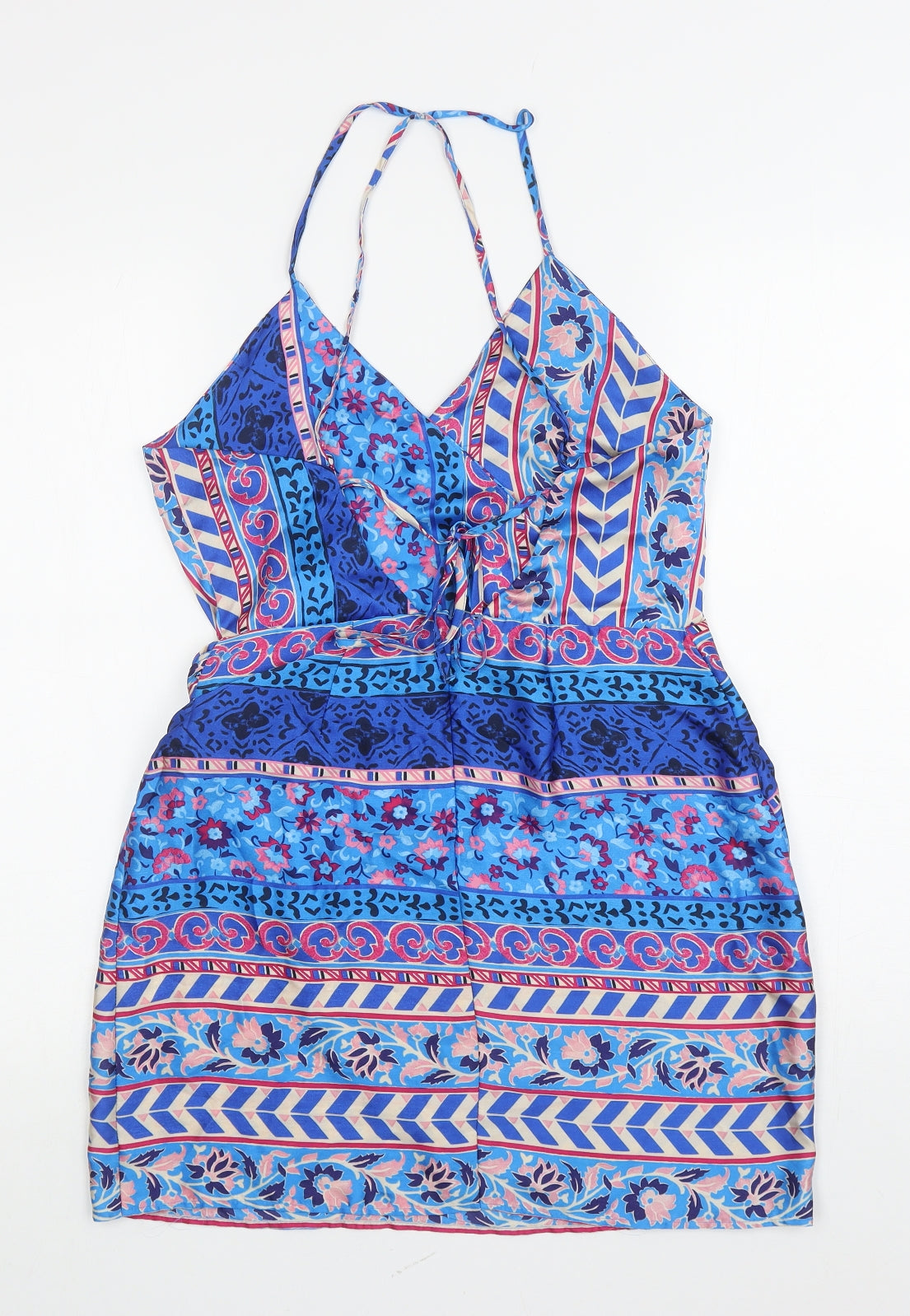 Womens Multicoloured Geometric Polyester Mini Size L V-Neck Zip