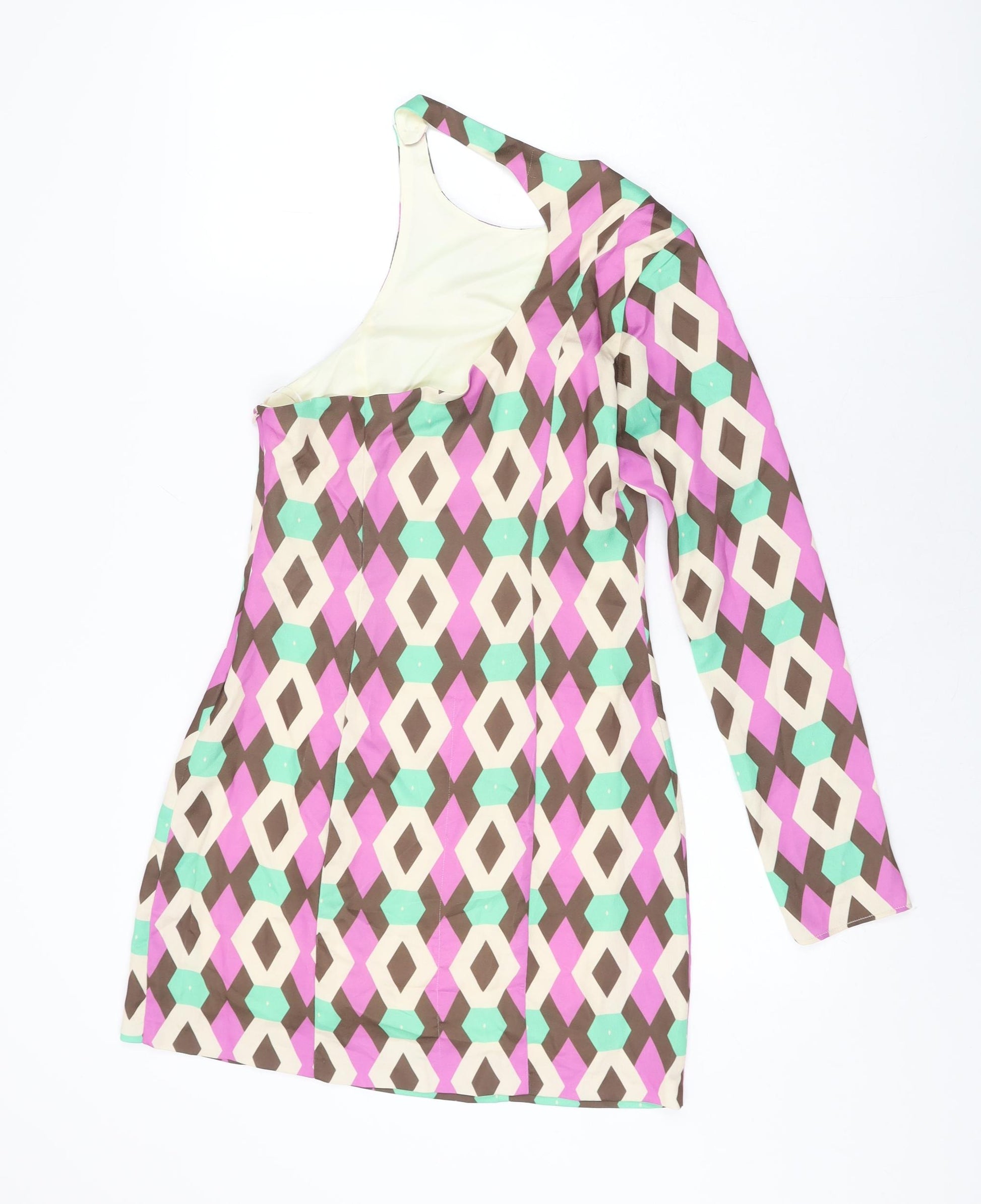 Womens Multicoloured Geometric Polyester Mini Size XS One Shoulder Zip