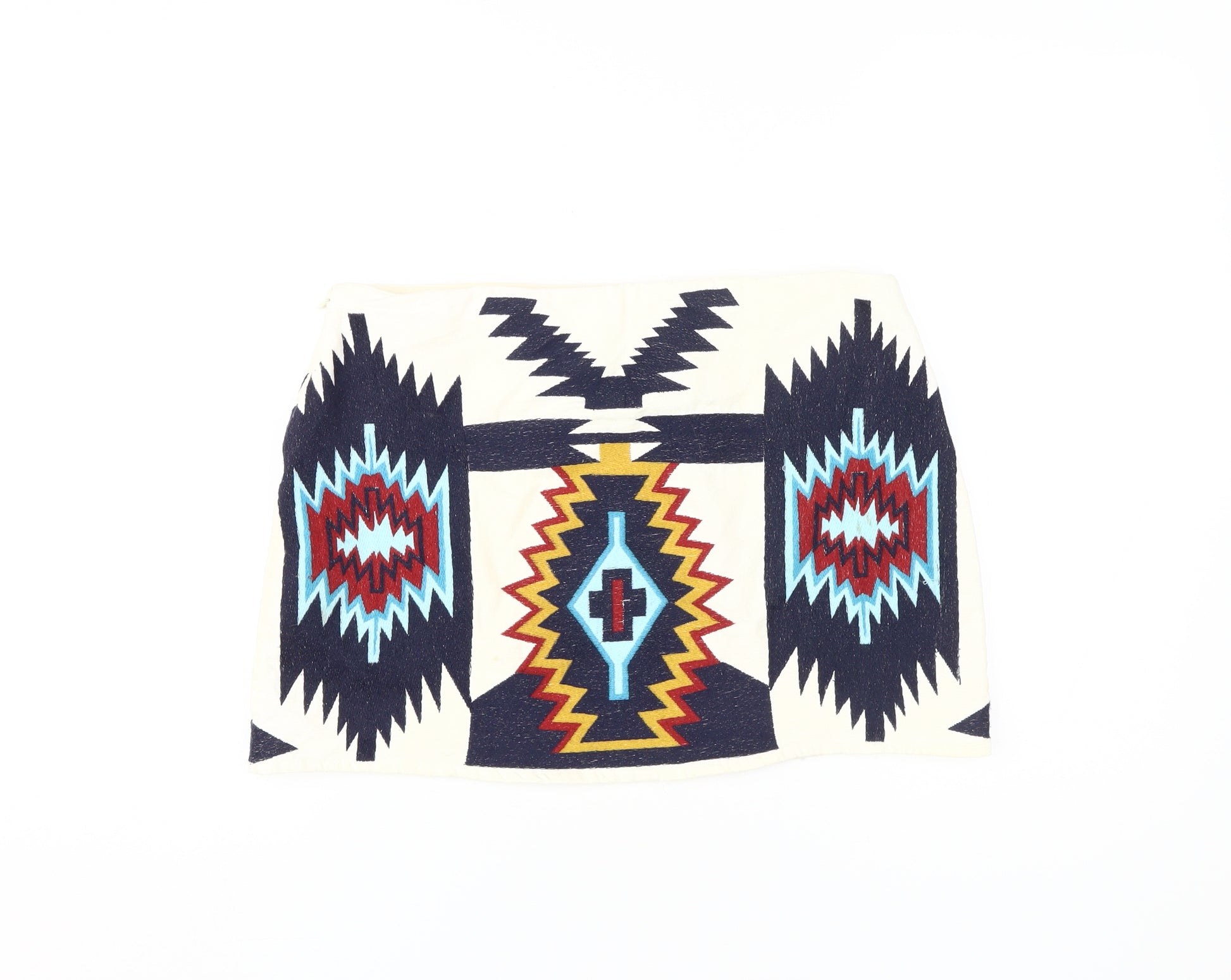 Step into the season with this vibrant Zara Women's Skirt in a lively multicoloured geometric pattern. Crafted from 100% polyester, this skirt is lightweight, comfortable, and perfect for the warmer months of spring and summer. The straight & pencil style offers a flattering silhouette that's both chic and versatile, making it ideal for casual outings or even a day out in the sun. The skirt features intricate embroidery accents, adding a touch of elegance and visual interest to the design. Its regular fit and medium size ensure a comfortable and easy wear. Suitable for various occasions, this skirt embodies casual sophistication and pairs beautifully with a simple top and sandals or sneakers. Enjoy the high-quality construction synonymous with Zara, known for delivering fashionable, durable clothing. Whether you're heading out for a casual brunch, a day of shopping, or a leisurely walk in the park, this skirt will make sure you stand out with style and grace. Excellent condition ensures you receive a garment that looks and feels new making it an excellent addition to any fashion-forward wardrobe.