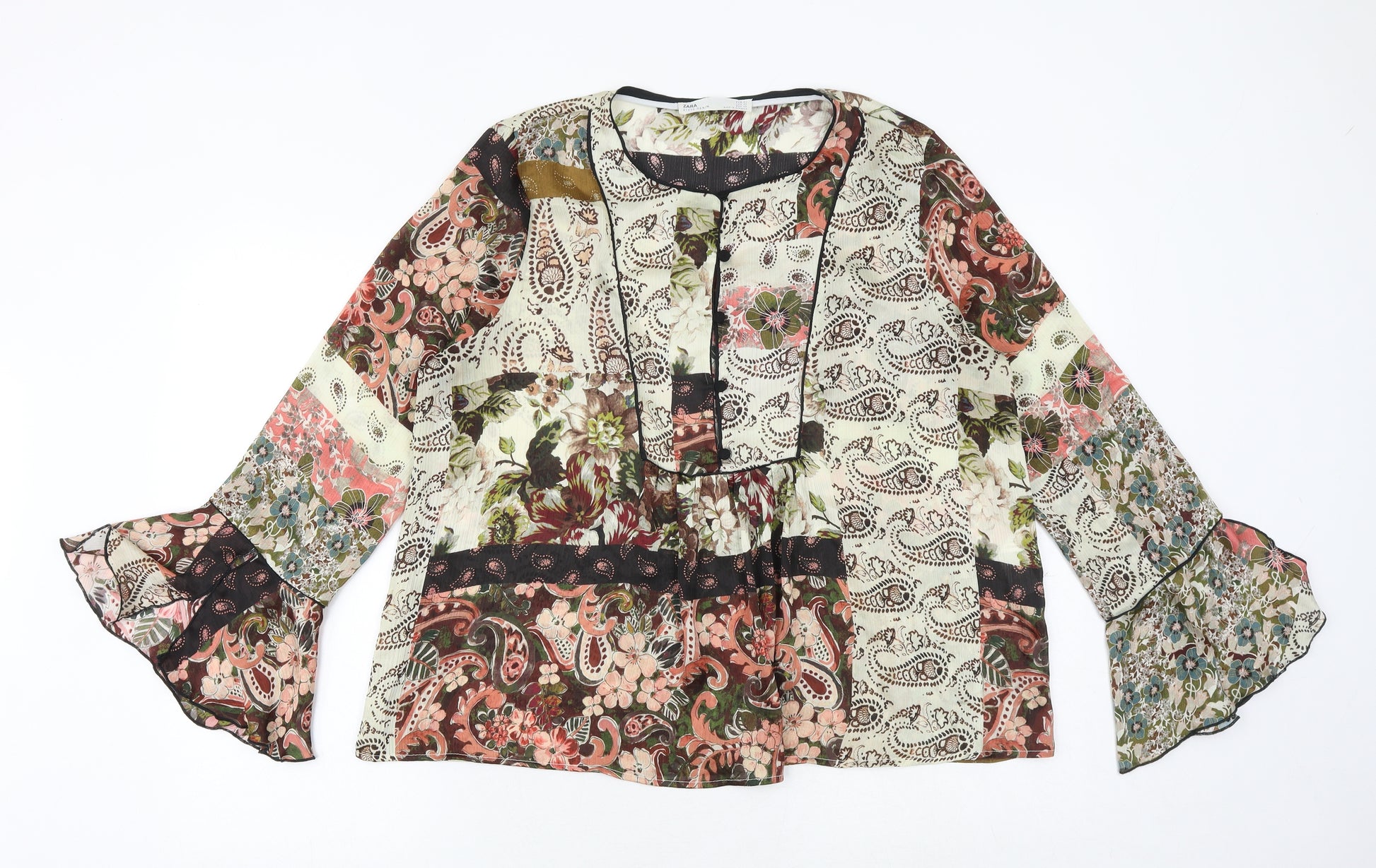Womens Multicoloured Paisley Polyester Basic Blouse Size XL Round Neck - Flute Sleeve