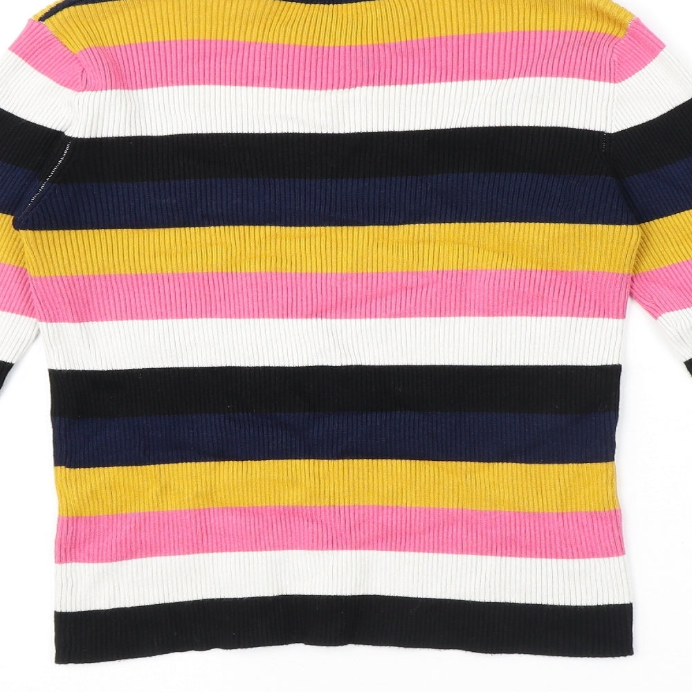 Womens Multicoloured Round Neck Striped Viscose Pullover Jumper Size M