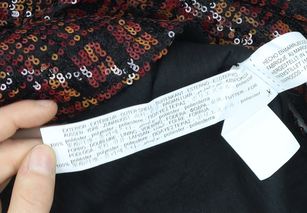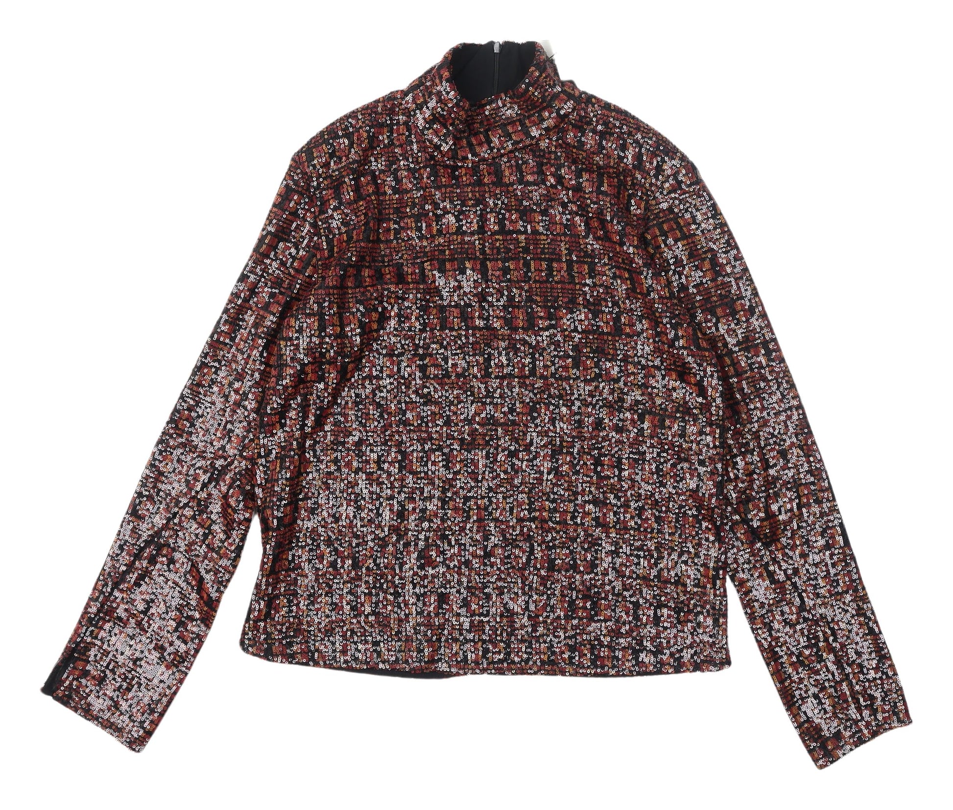 Elevate your evening wardrobe with this stunning multicoloured sequin high neck blouse from Zara. Crafted from 100% polyester, this luxurious tunic-style top offers a dazzling effect thanks to its sequined fabric, perfect for turning heads at any event. Designed with a regular fit, it features long sleeves and a high neckline that exudes sophistication and elegance. Perfect for autumn and winter occasions, the lined interior ensures comfort while the zip closure adds convenient wearability. Ideal for party or cocktail events, this retro-themed blouse is a must-have for those who appreciate both style and comfort. Machine washable for easy care, it's in brand new condition with tags attached, ready to make its debut in your stylish collection.