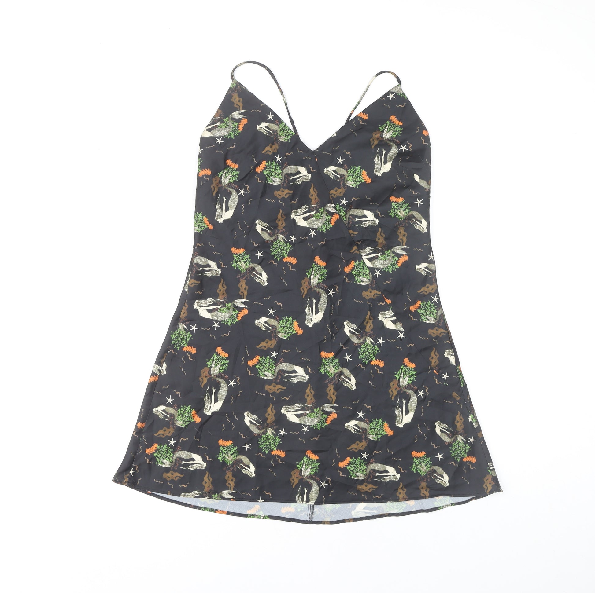 Step out in style with this beautiful multicoloured slip dress from Zara, designed for the fashion-forward woman. Perfect for casual occasions, this dress features a flattering sleeveless design and a stylish V-neckline that adds a touch of elegance to your outfit. The floral pattern and nature theme make it an ideal choice for summer days. Crafted from 100% polyester, this lightweight, woven dress is both comfortable and machine washable, ensuring you look fabulous with minimal effort. The regular size 12 and pullover closure offer ease and convenience, while the strappy sleeves add a chic touch to your ensemble. With its seamless design and exquisite style, this dress is perfect for women who love to express their individuality through fashion. Whether you're heading to a beach party or a casual day out, this Zara slip dress is your go-to fashion statement. Pair it with your favourite sandals or heels to complete the look and enjoy the compliments that come your way.