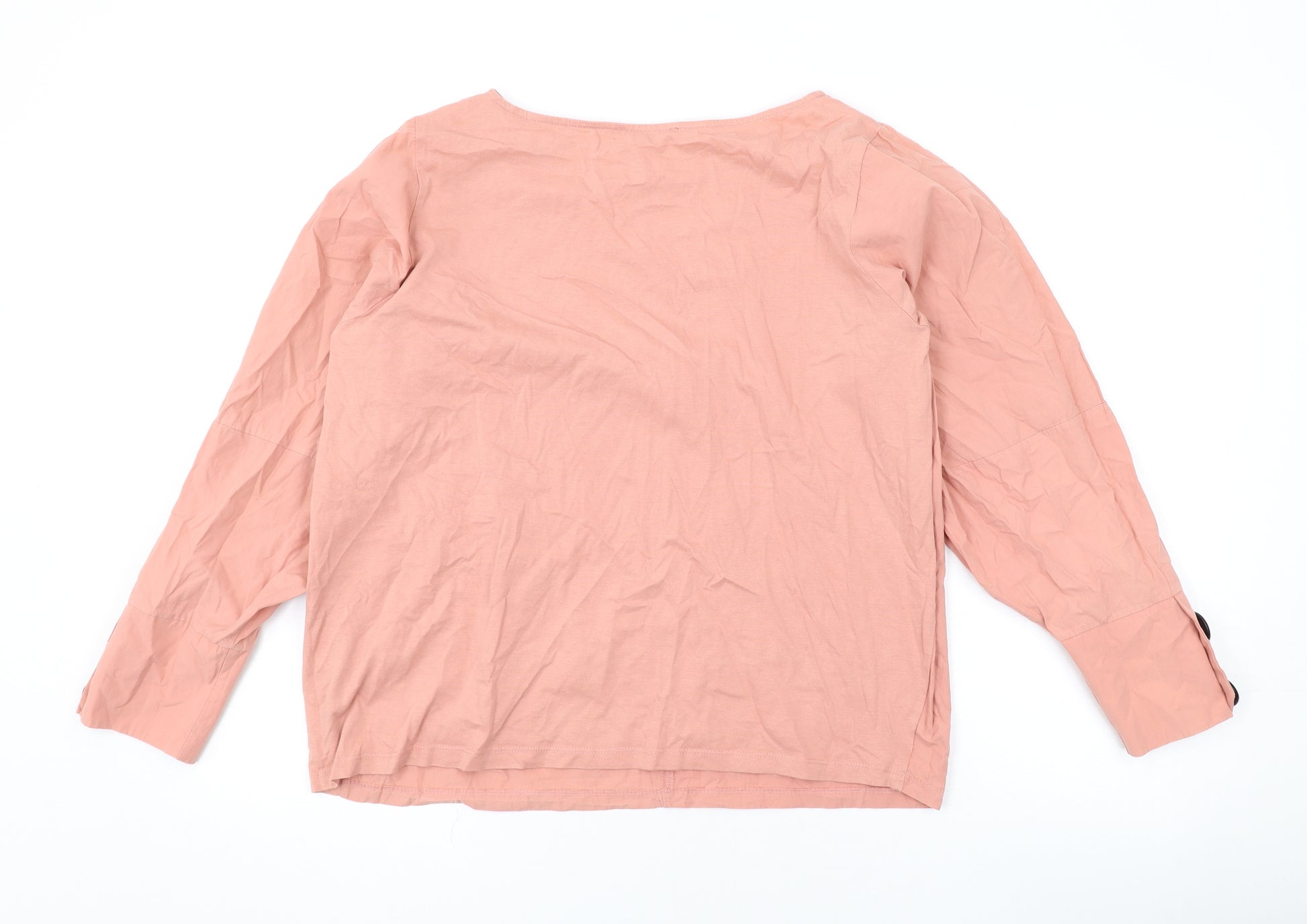 Womens Pink Cotton Basic Blouse Size M Round Neck