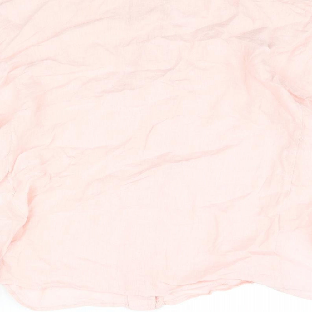 Womens Pink Linen Basic Button-Up Size L Collared - Batwing