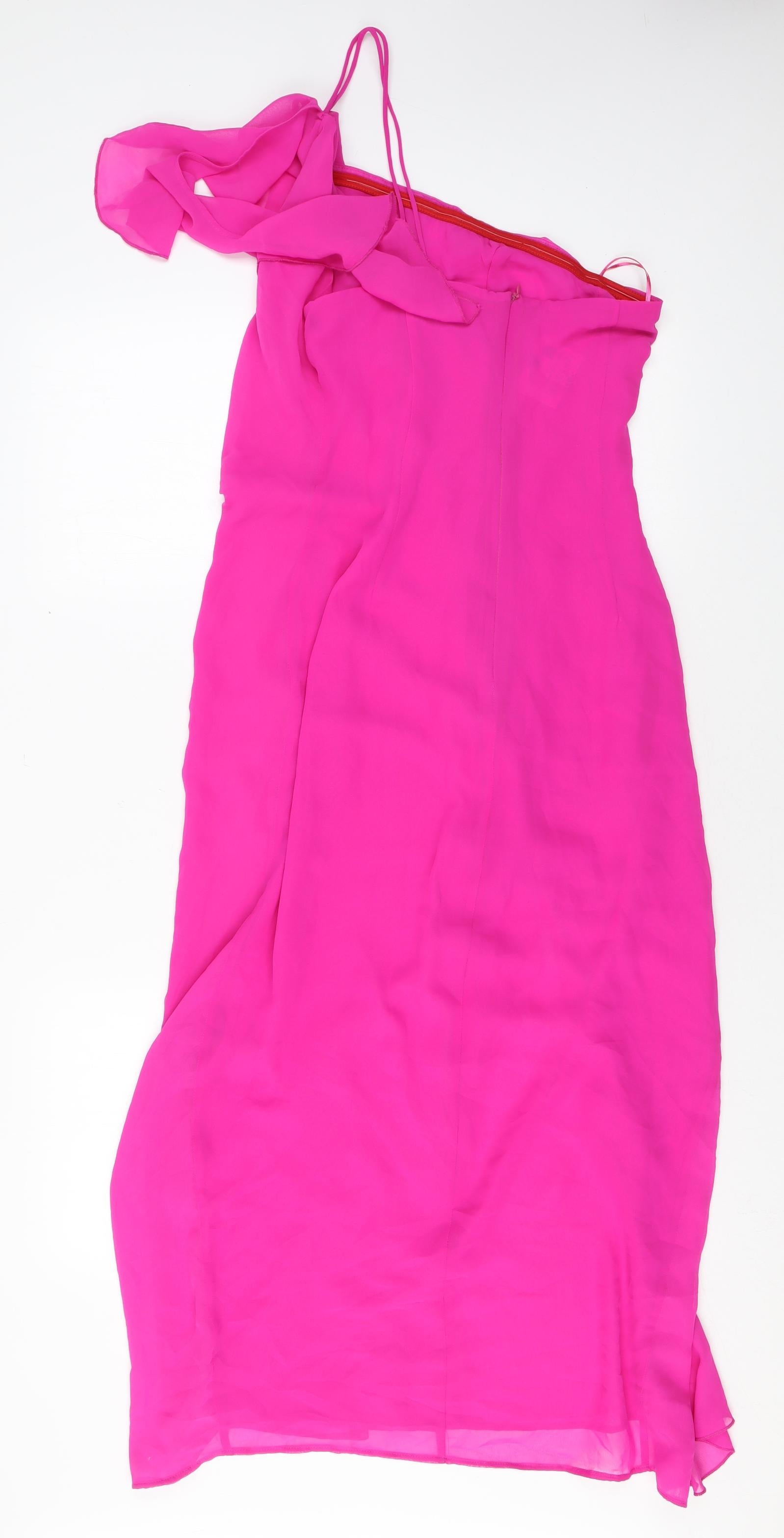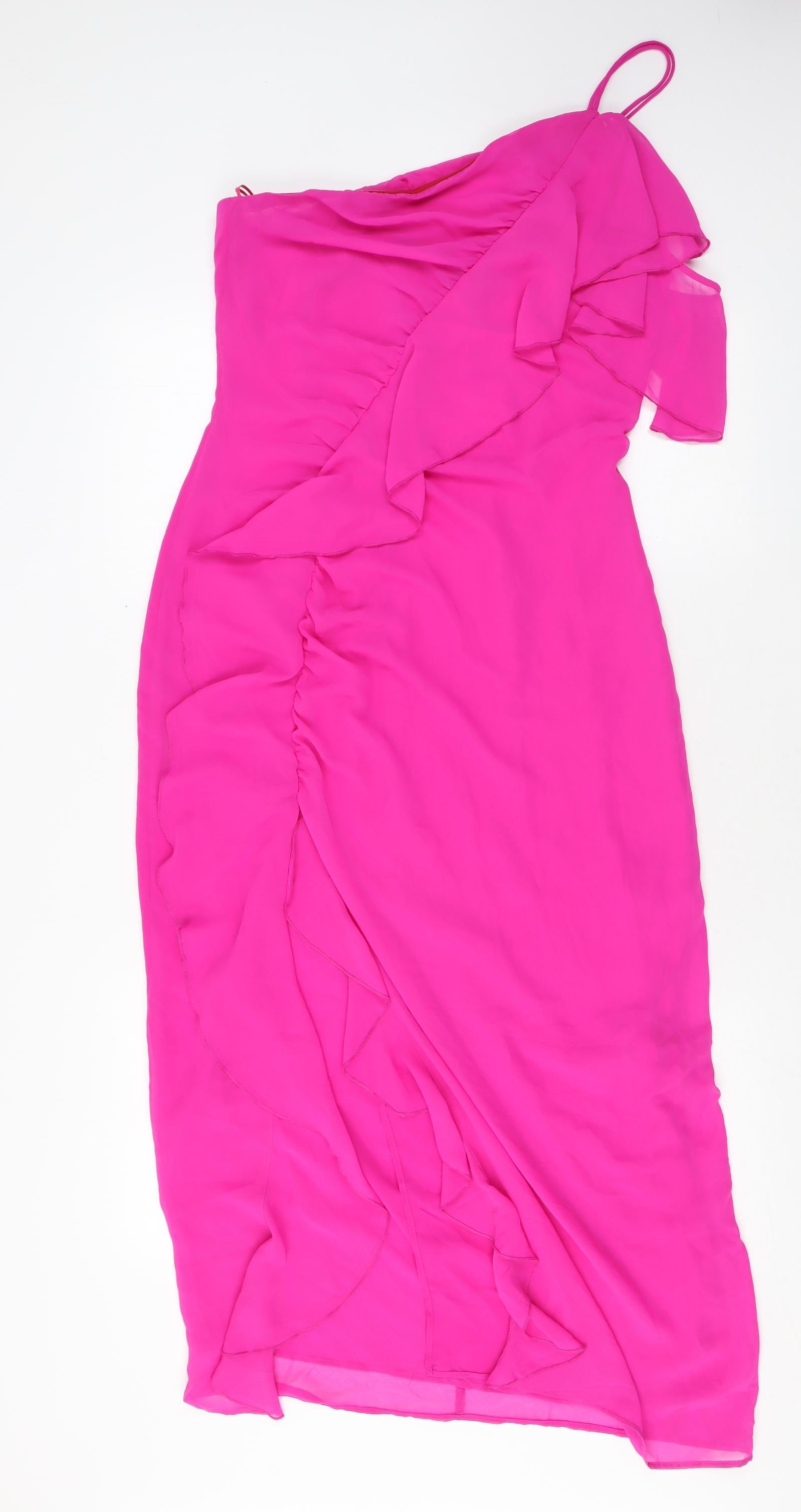 Womens Pink Polyester A-Line Size M One Shoulder Zip