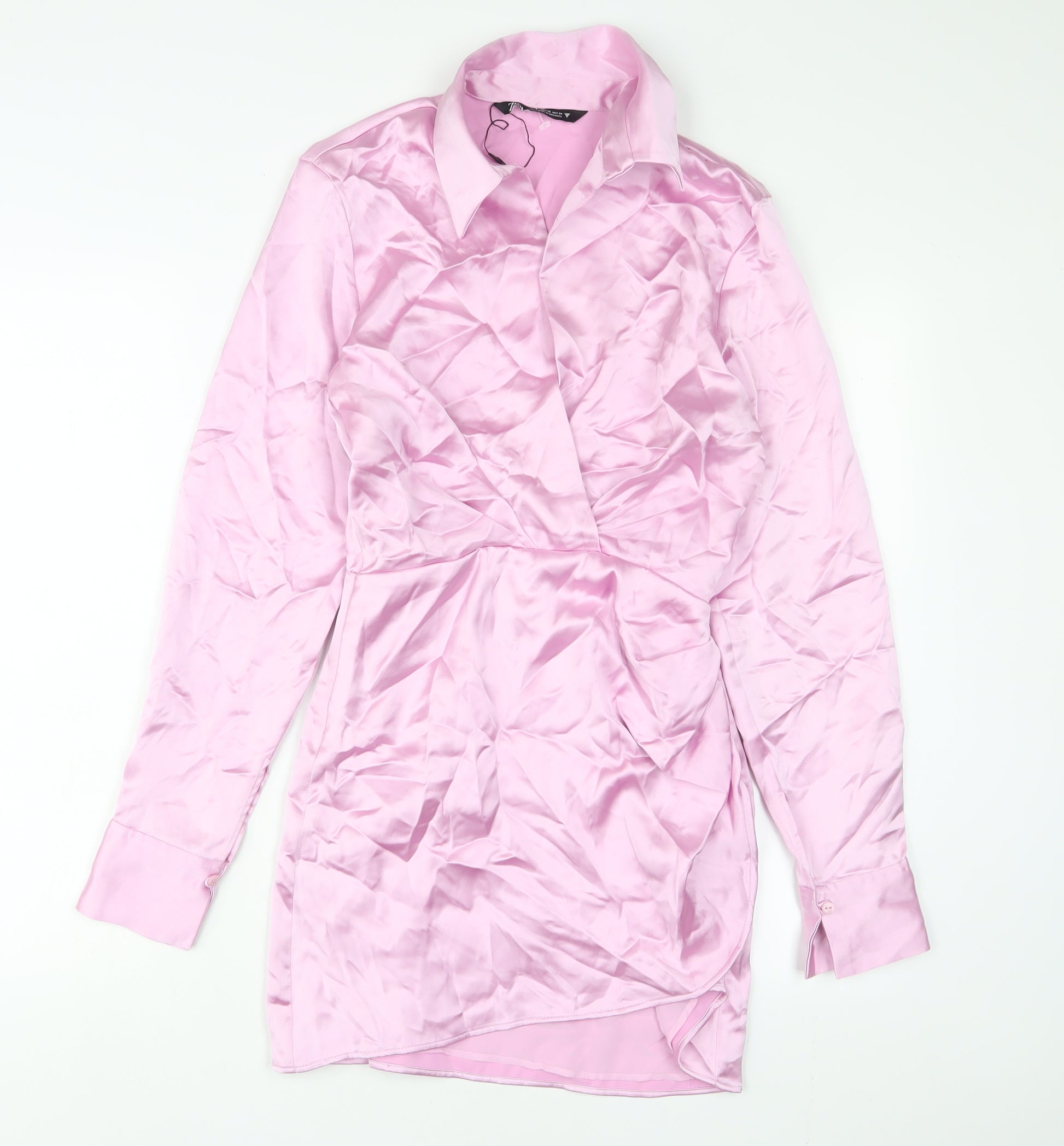 Womens Pink Polyester A-Line Size XS Collared Zip