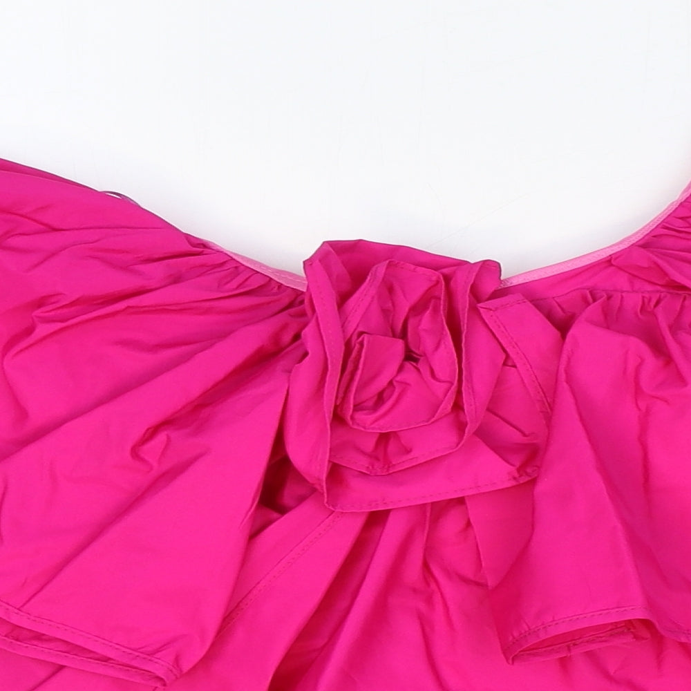 Womens Pink Polyester Cropped Blouse Size M Scoop Neck
