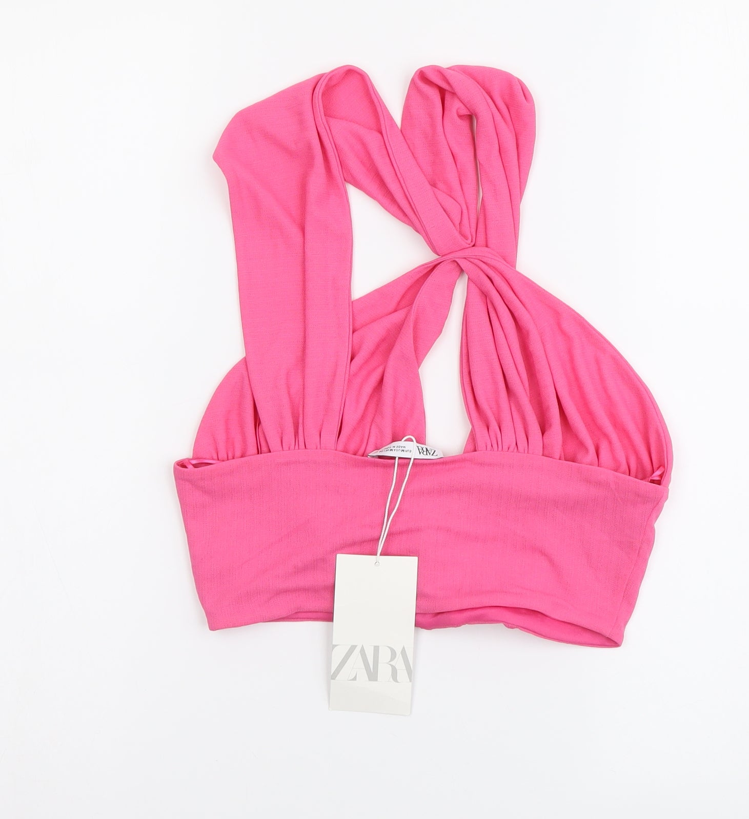 Womens Pink Polyester Cropped T-Shirt Size M Halter