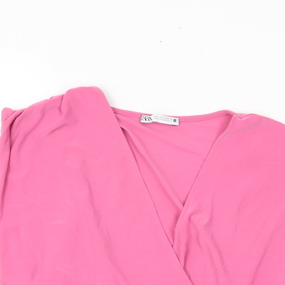 Womens Pink Polyester Wrap T-Shirt Size S V-Neck