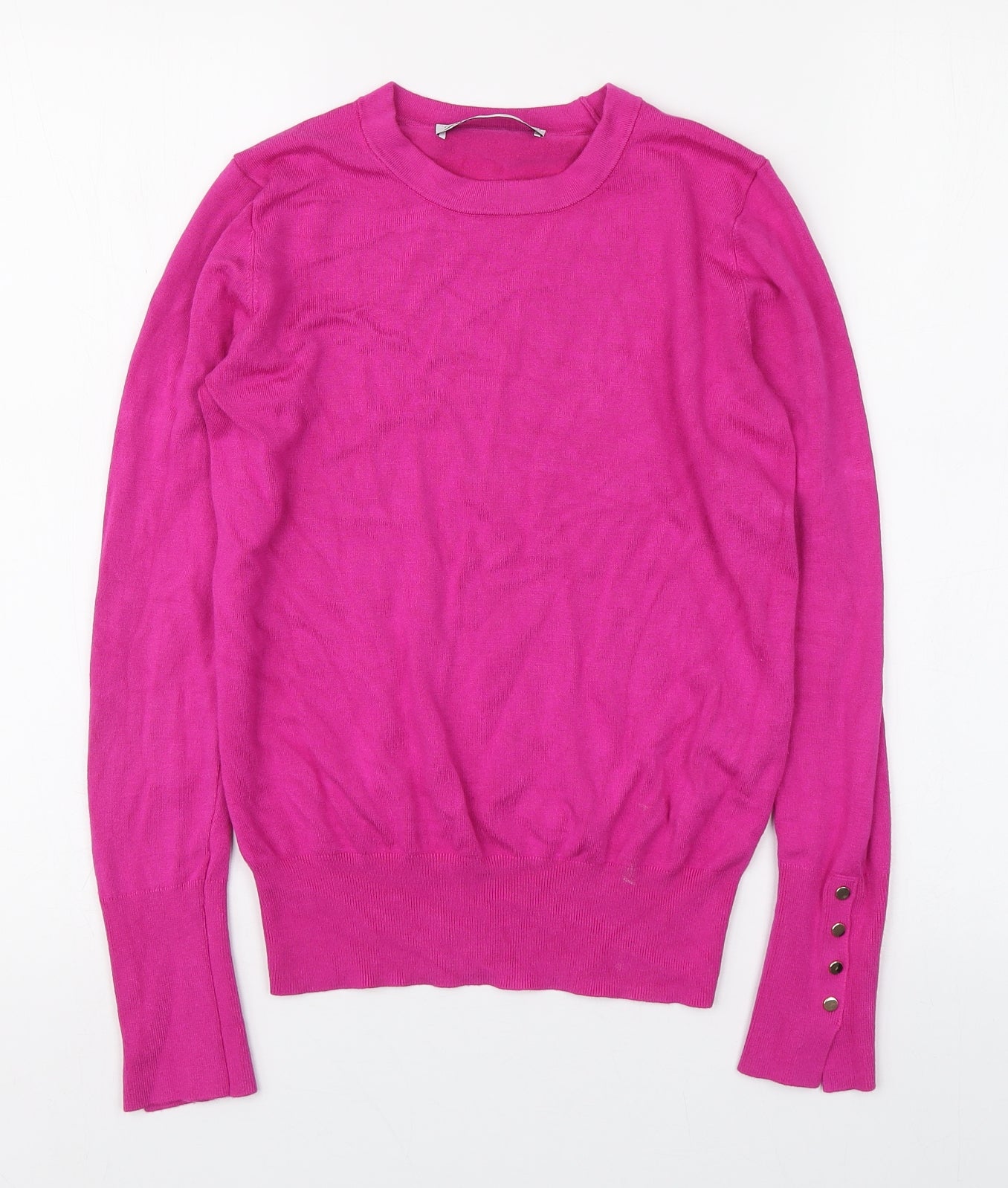 Womens Pink Round Neck Viscose Pullover Jumper Size S