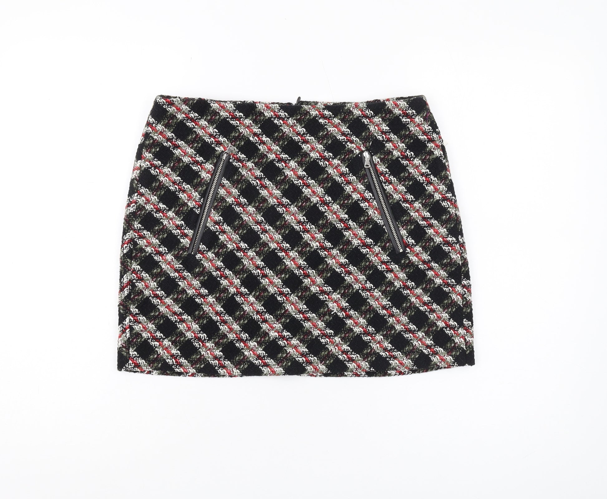 Elevate your wardrobe with this chic Zara skirt, perfect for both casual outings and professional settings. Crafted from a luxurious blend of materials, this skirt features a striking plaid pattern in a classic black and multicoloured design. The tweed fabric adds a textured dimension, ensuring you stand out with sophistication.This skirt is designed in a straight pencil style, offering a flattering silhouette that pairs beautifully with a variety of tops. The mid-rise waist not only caters to comfort but also to style, making this a versatile addition to your collection. The zip accent adds a modern touch, seamlessly integrating into the skirt’s design while providing convenience.Ideal for autumn and winter, this skirt is crafted to keep you stylish and warm. The regular size type ensures a fit that stays true to size, while the short length adds a contemporary flair to your ensemble, making it suitable for both workwear and casual occasions.Maintain its pristine condition with dry clean only care instructions, ensuring it remains a staple in your wardrobe for seasons to come. Brand new with tags, perfect for adding a touch of elegance to your daily dressing or for making a memorable impression at work.Don't miss out on the opportunity to own a piece that embodies the essence of modern fashion with timeless appeal.