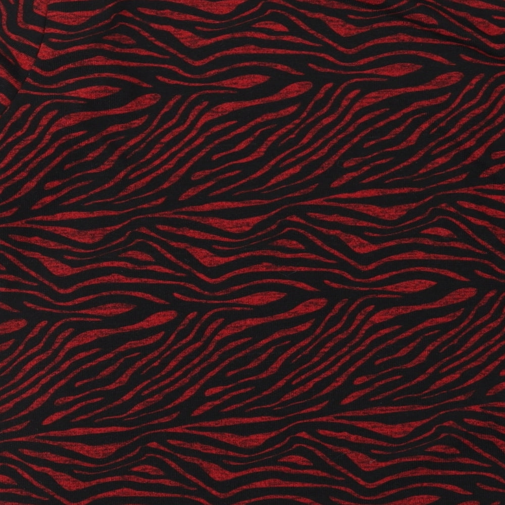 Womens Red Animal Print Polyester Basic Blouse Size M Round Neck
